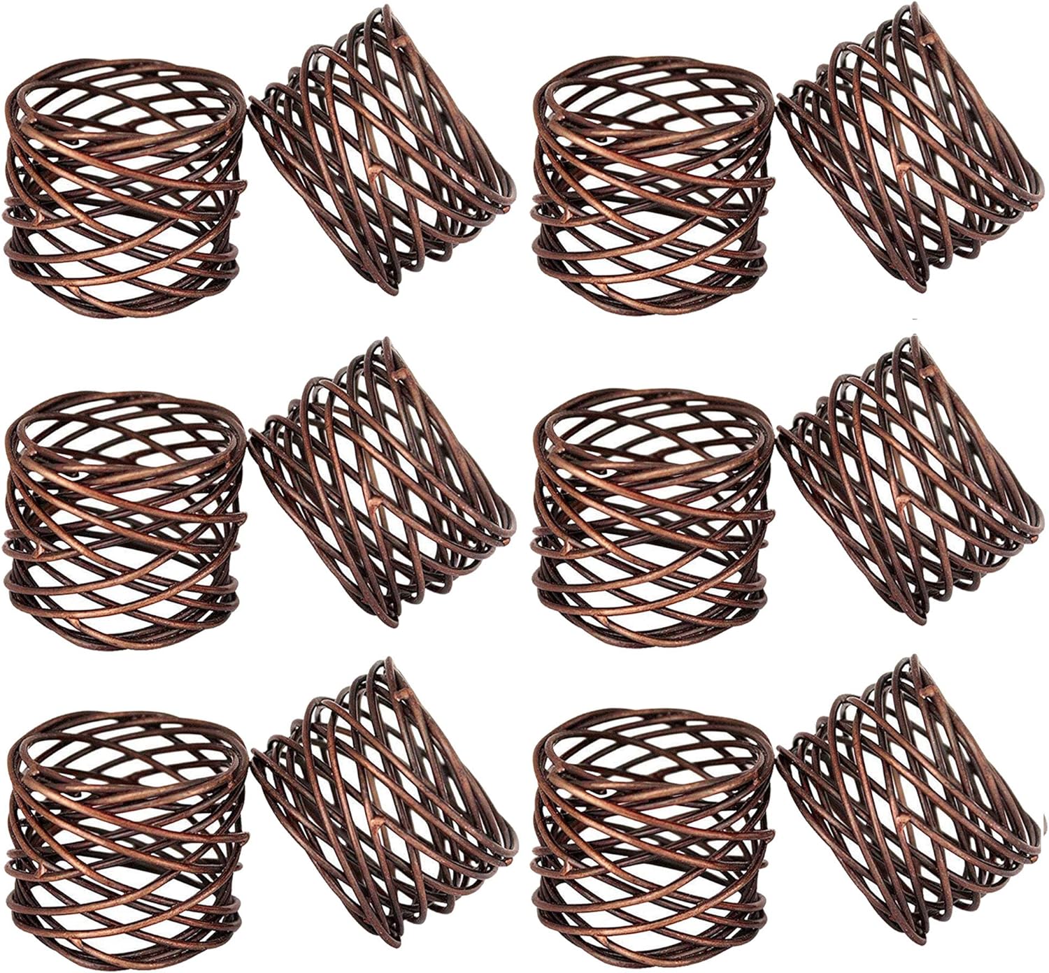 Handmade Copper Antique Round Mesh Napkin Rings Holder for Dinning Table Parties Everyday, Set of 12