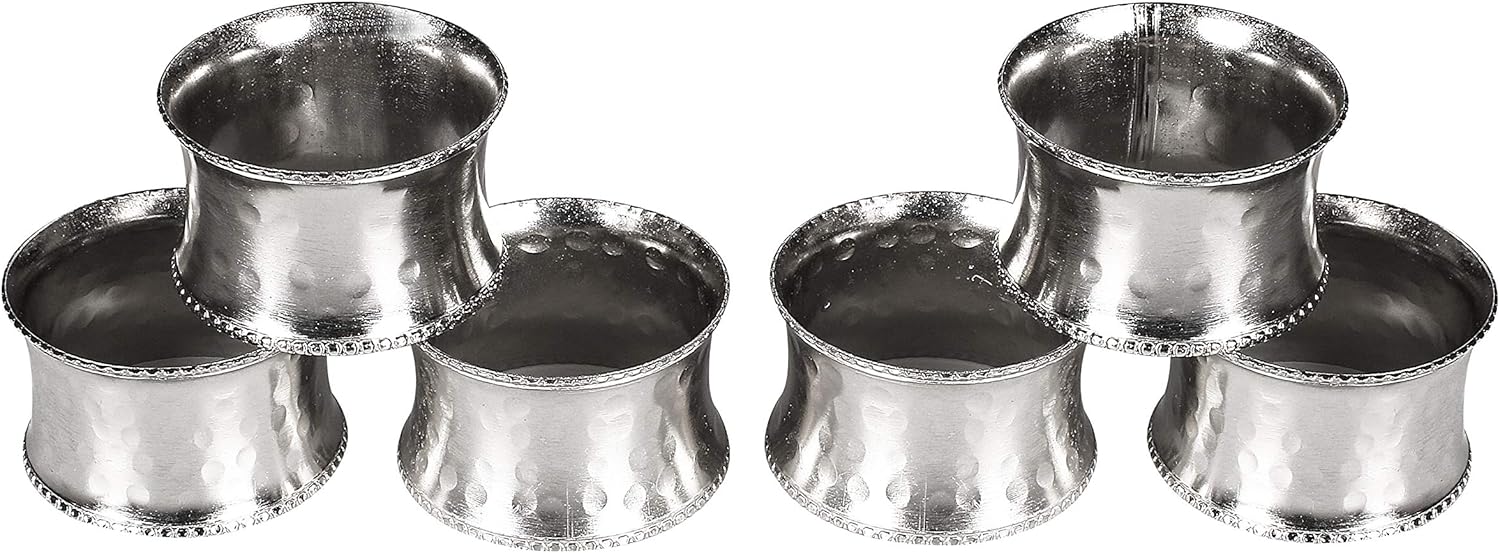 Everyday Metal Napkin Rings for Wedding Receptions, Dinners Parties, Family Gatherings, Everyday Use - Hand Made by Skilled artisans, Hammered Silver, Set of 6
