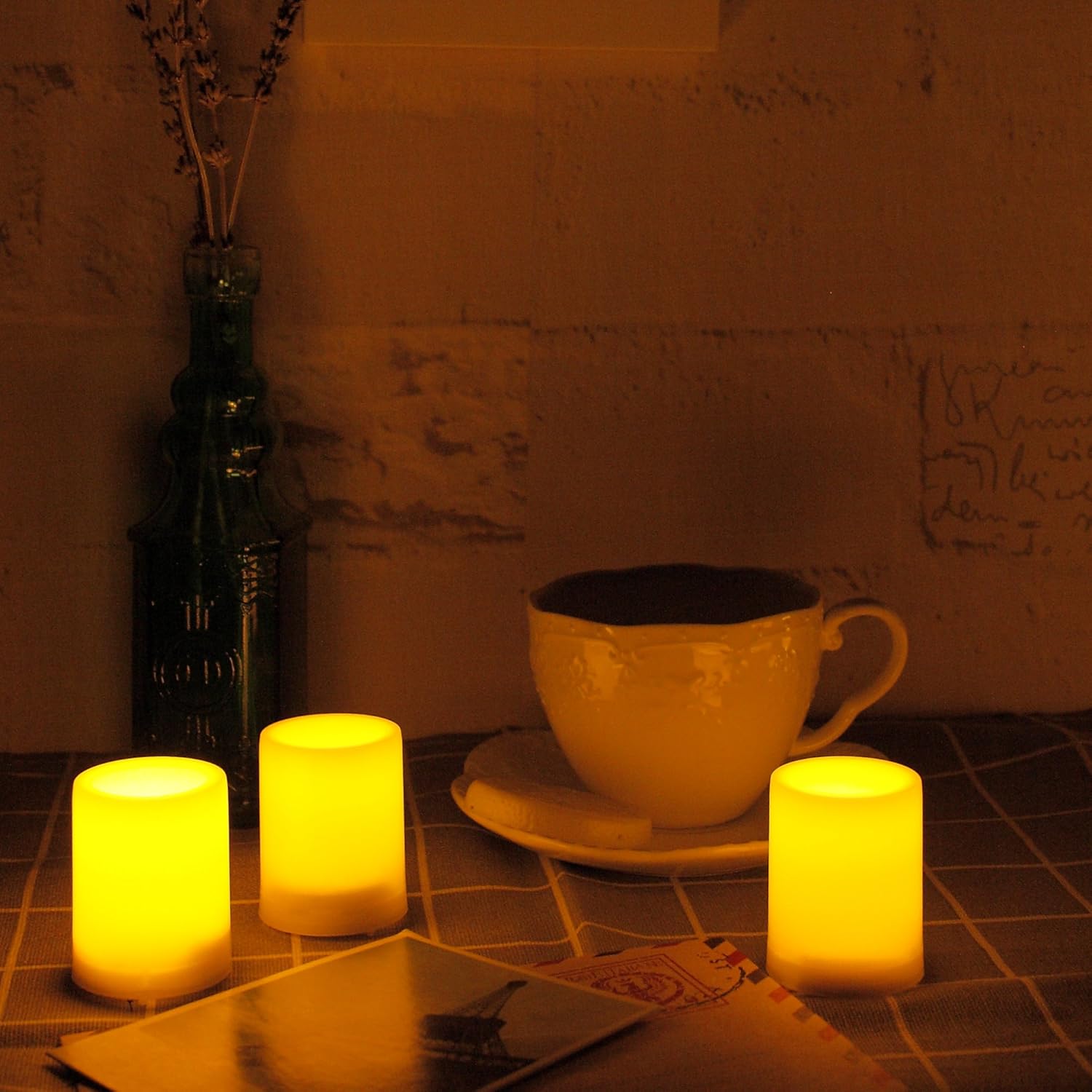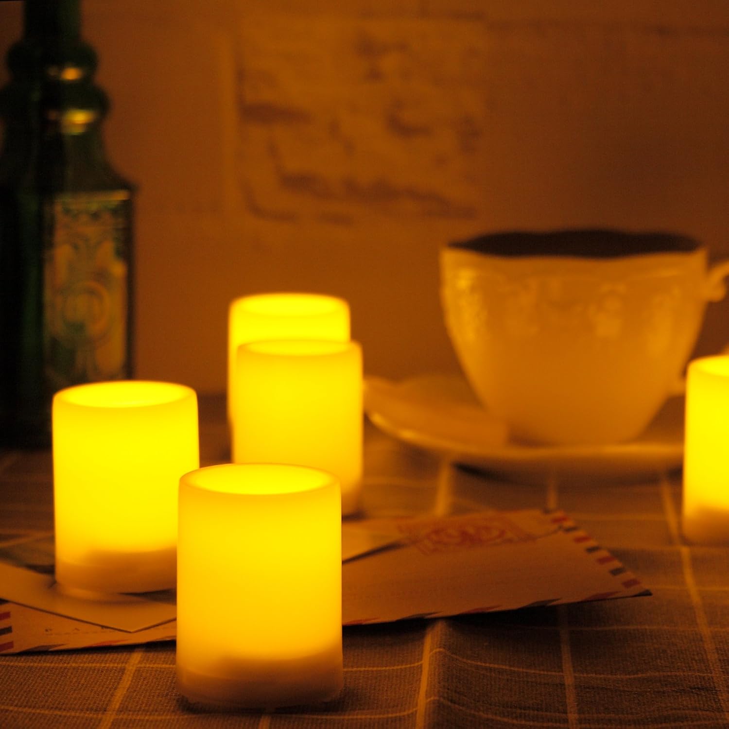 • Flicker like real candles but better than real wax candles. These electric votive candles are made of high quality, durable, wax like plastic, and bright flickering bulbs. They look like and flicker like real candles. Compared the real wax LED candles, plastic candles are more durable and can be used in more occasions. For example, resin candles will never melt under the sun therefore these plastic candles can be use outdoor when it does not rain or snow.