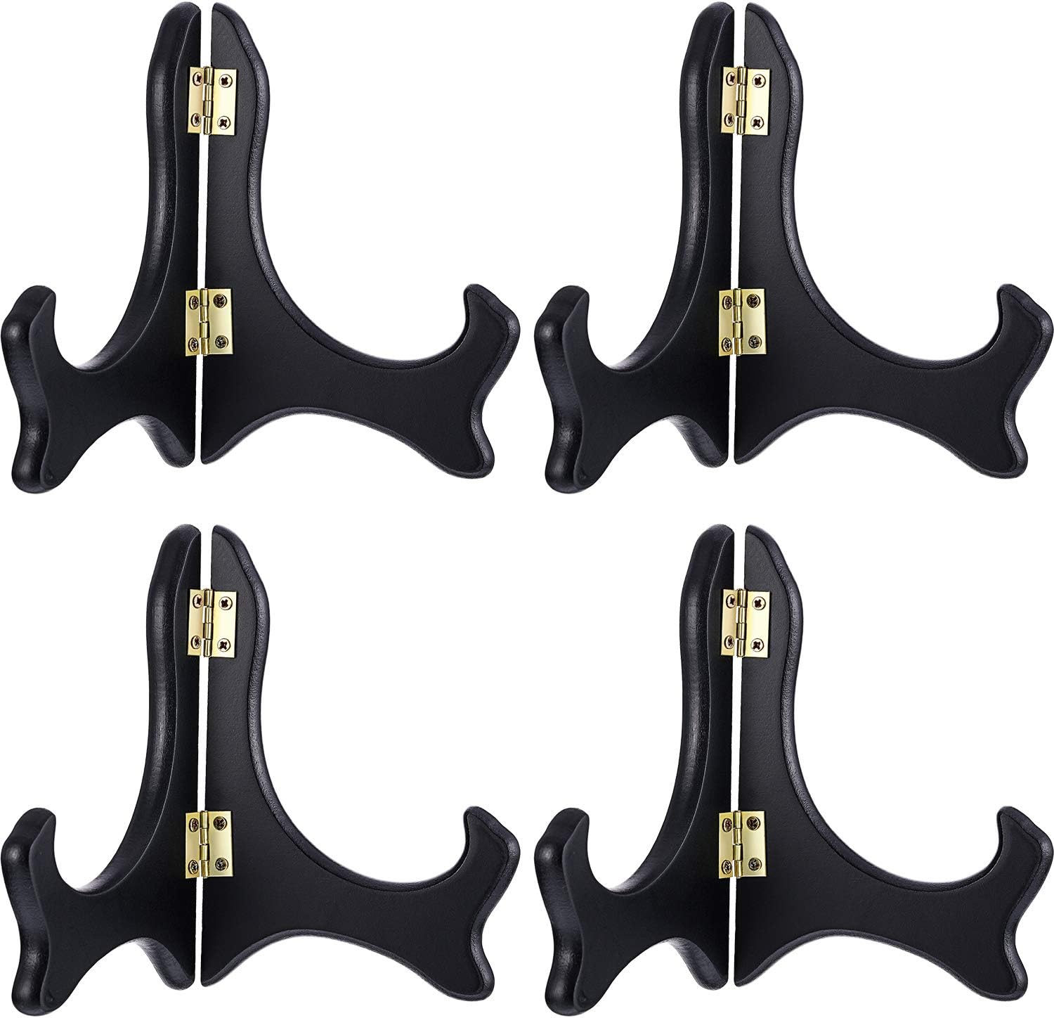 Tatuo 4 Pack Black Wooden Display Stand Plate Stands (5 Inch, Black)