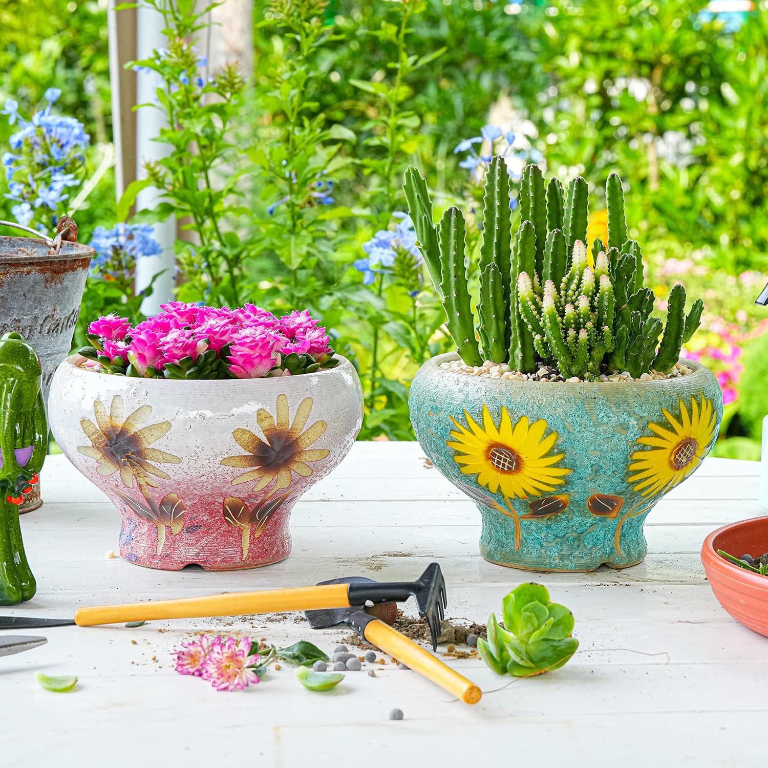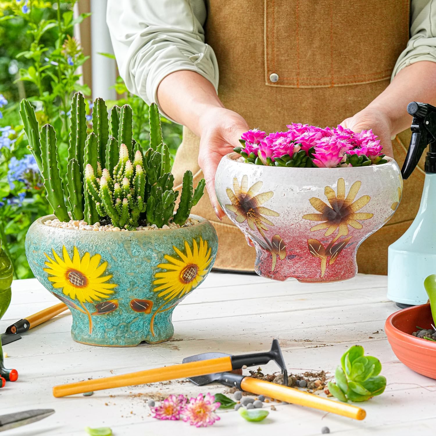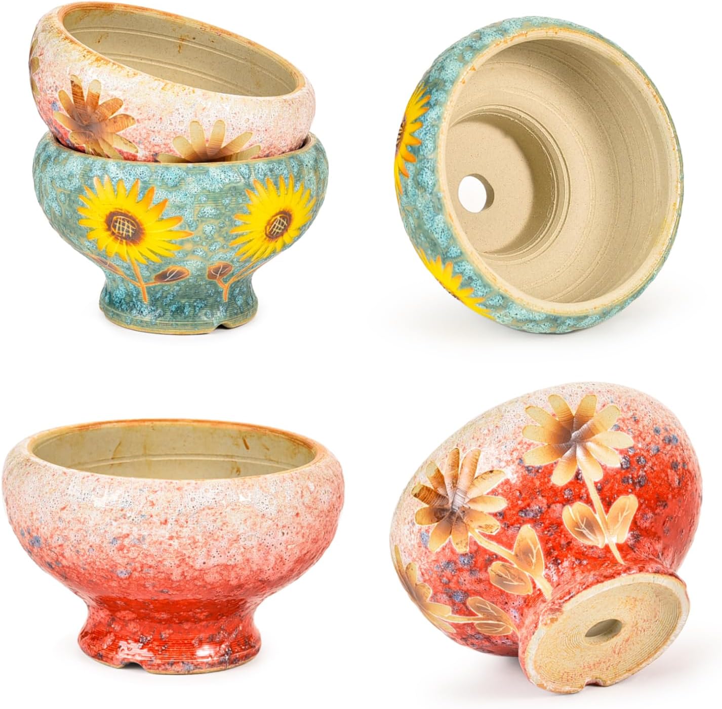 • Handicrafts: This set of beautifully design ceramic succulent pots are handcrafted, beautiful vibrant colors with hand painted flower. The subtle variations in the glaze add character, great artistry and attractive.