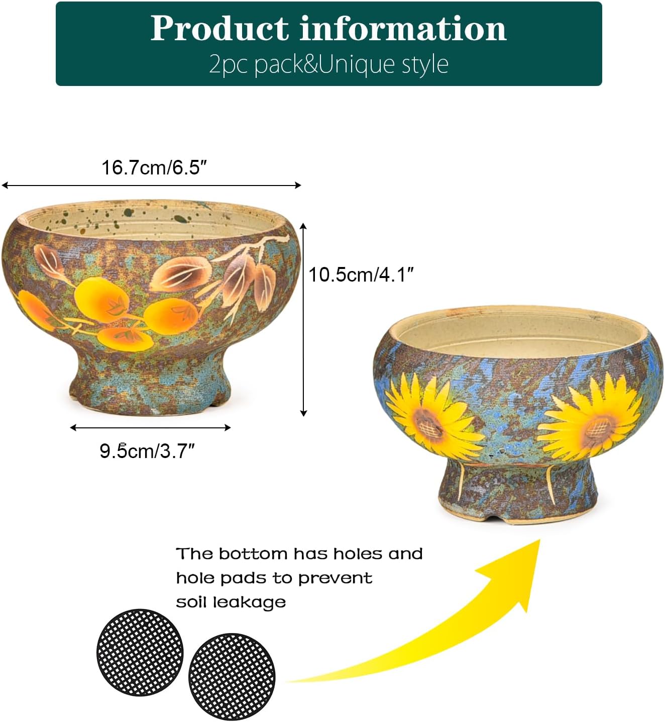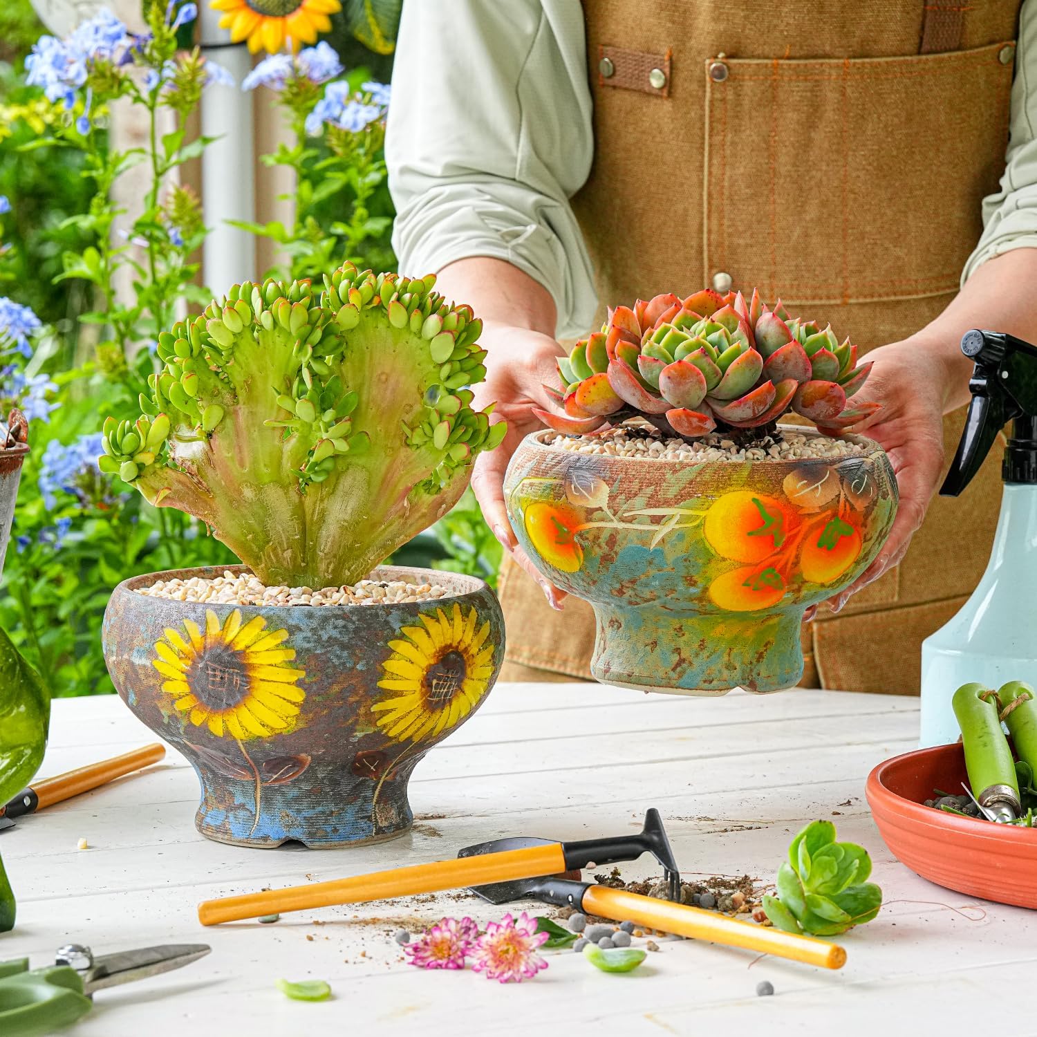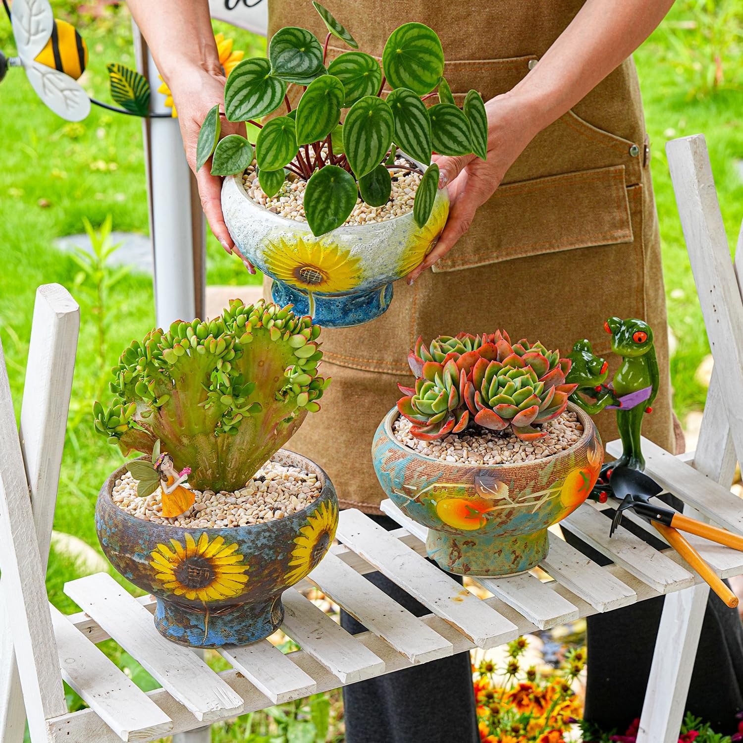 • Handicrafts: This set of beautifully design ceramic succulent pots are handcrafted, beautiful vibrant colors with hand painted flower. The subtle variations in the glaze add character, great artistry and attractive.
