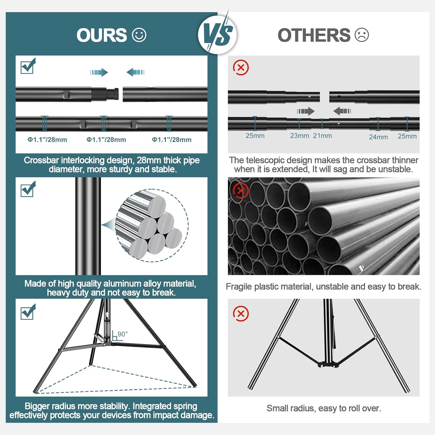 • The Heavy Duty Backdrop Support System Is Easy To Set Up And Take Down,No Need For Any Tools.Aluminium Material, Stable And Sturdy, Suitable For Backdrop, Home, Studio Or Outdoor
