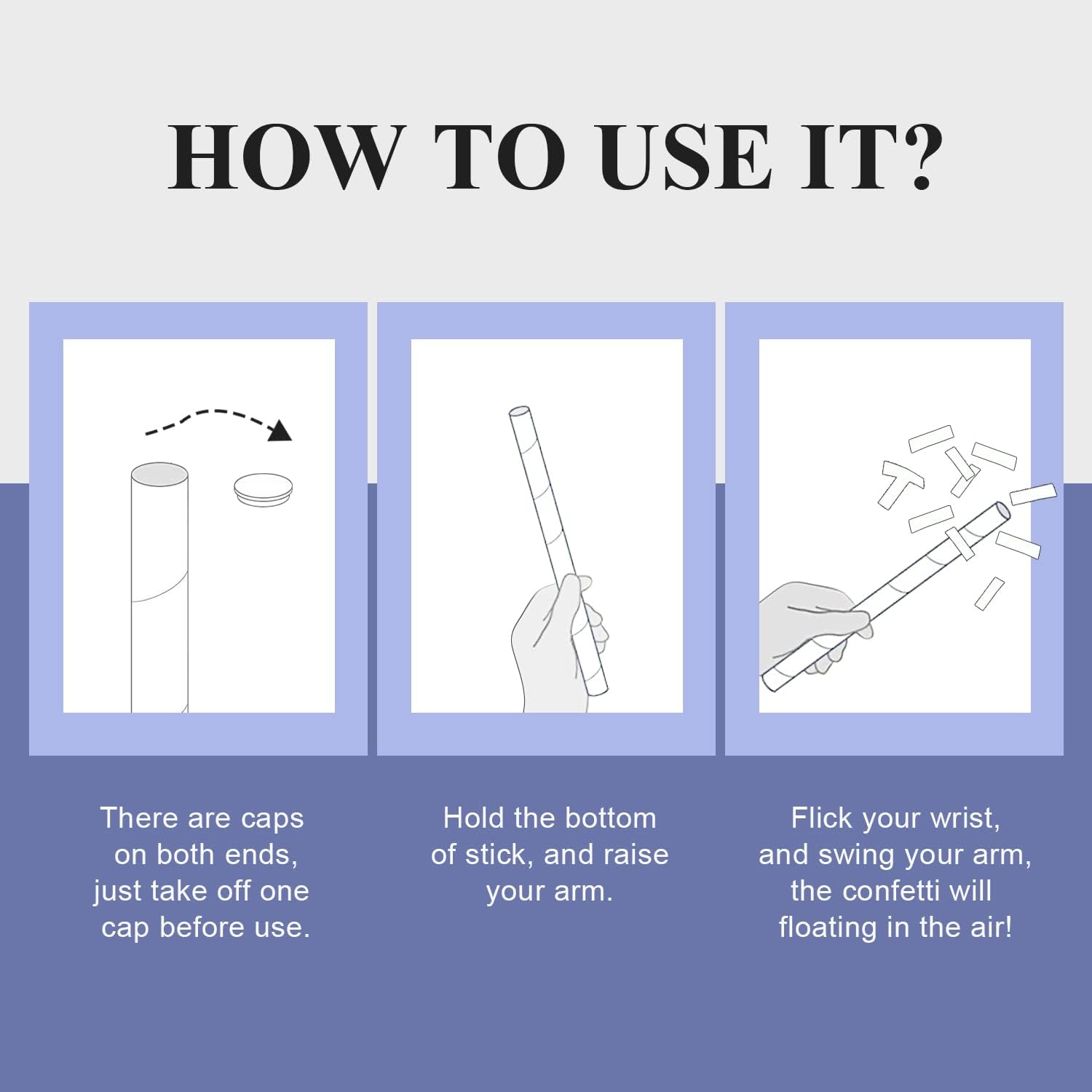 • Easy to Use & Safe : Just open the cap, swing your arm and flick the sticks, the paper confetti will flutter in the air, can be used indoor or outdoor party. It's great for party decoration, much safer than confetti cannon or confetti poppers