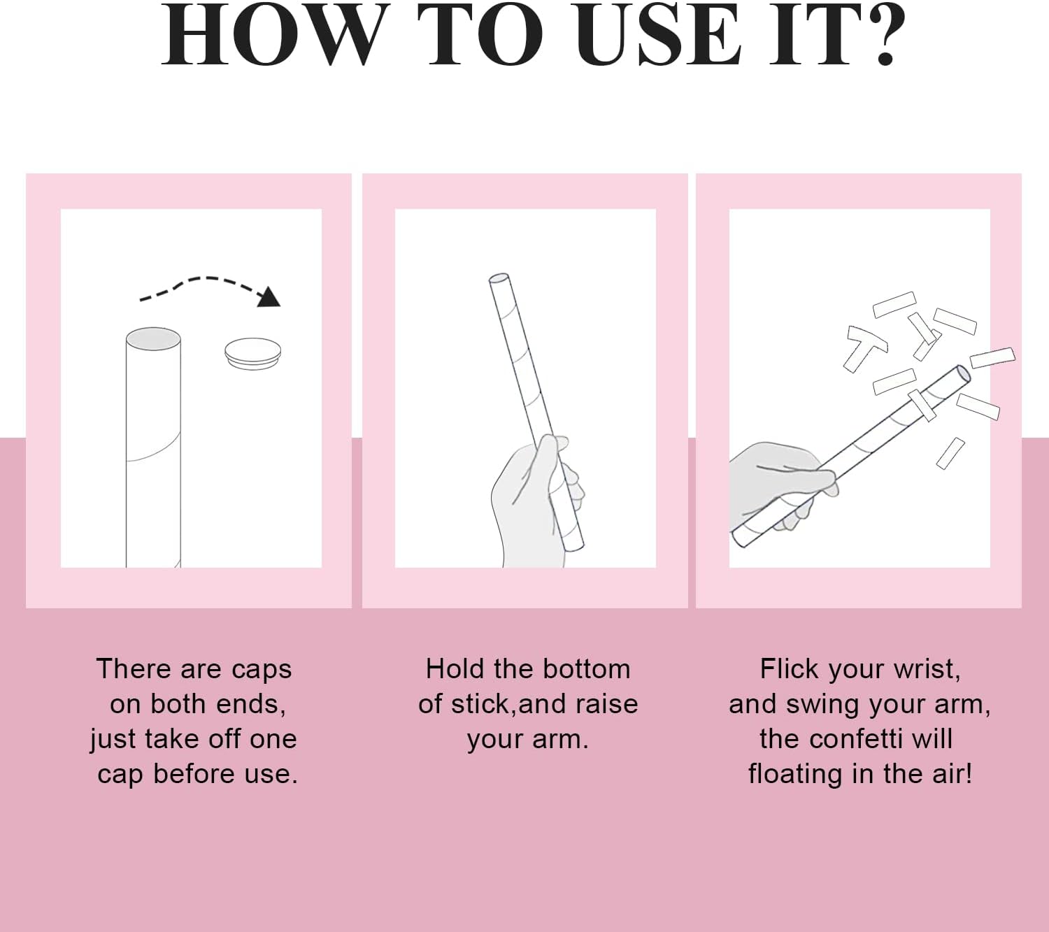 • Easy to Use : Just open the cap, swing your arm and flick the sticks, the paper confetti flick will flutter in the air, can be used at indoor or outdoor parties