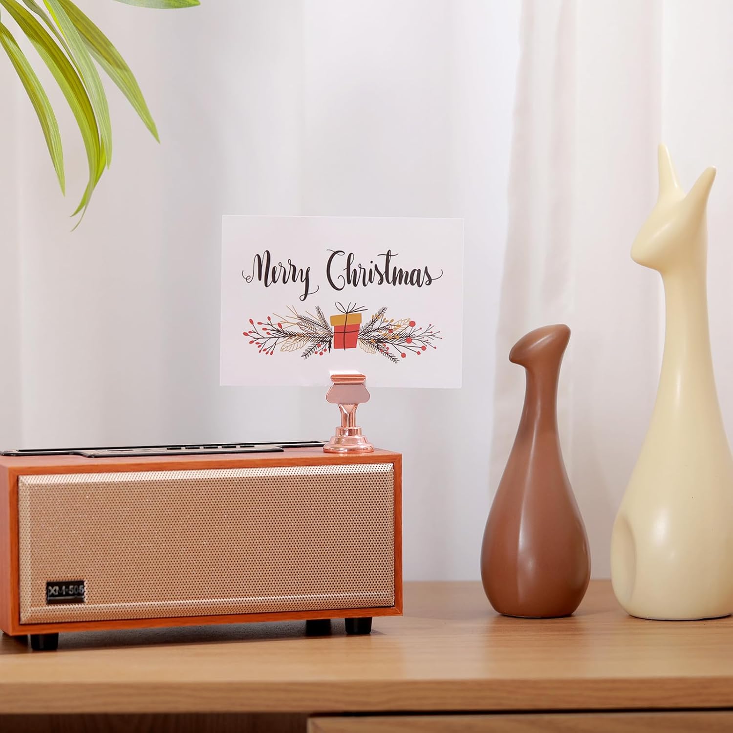Urban Deco 16PK Table Number Holders Place Card Holders 1.7 Inch Table Card Holders Steel Card Holders for Photos, Food Signs, Memo Notes, Weddings, Restaurants, Birthdays(Rose Gold)