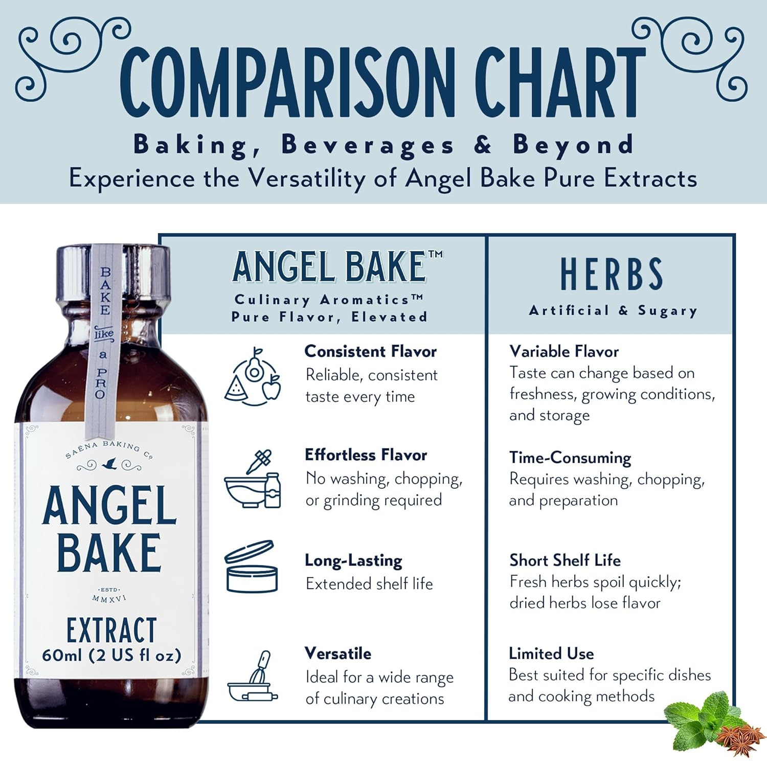 • VERSATILE BAKING FLAVORING EXTRACTS: Elevate your desserts like cakes, cupcakes, cookies, icing, and buttercream with vibrant extract flavors. Create flavored syrups by using our baking extracts by 1/4-1/2 teaspoon to a syrup for a gourmet touch.