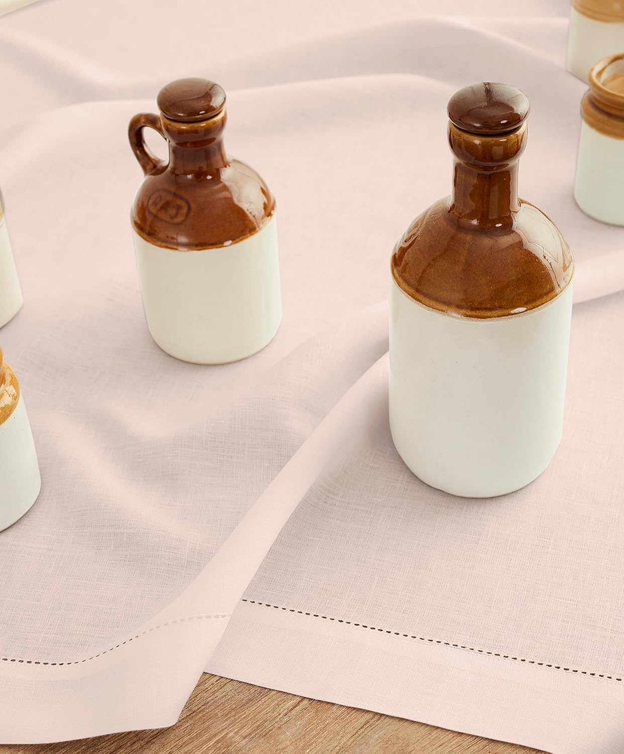 Solino Home Pink Linen Tablecloth 52 x 52 Inch - 100% Pure Linen Square Table Throw - Classic Hemstitch, Machine Washable Table Cloth for Halloween