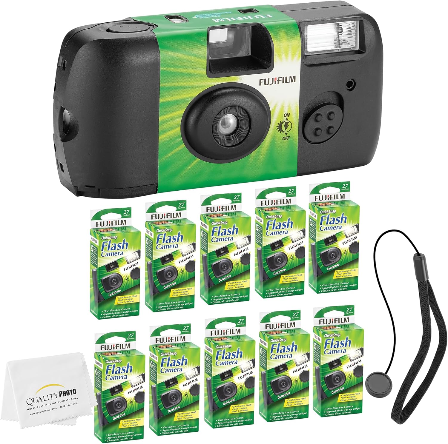 Fujifilm QuickSnap Flash 400 Disposable 35mm Camera + Hand Strap + Quality Photo Microfiber Cloth (10 Pack)