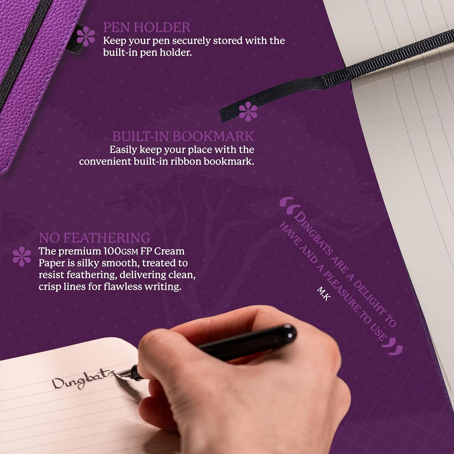 • A5 NOTEBOOK WITH LOTS O' FEATURES: Dingbats notebooks ooze quality - this hardcover bound leather notebook is crafted with PU vegan leather, micro-perforated cream 100gsm pages, an elastic closure and pen holder. It's complete with animal footprint end sheets, and an inner pocket for a little added detail - the perfect gifts for men and women, these travel essentials are a gift that keep on giving