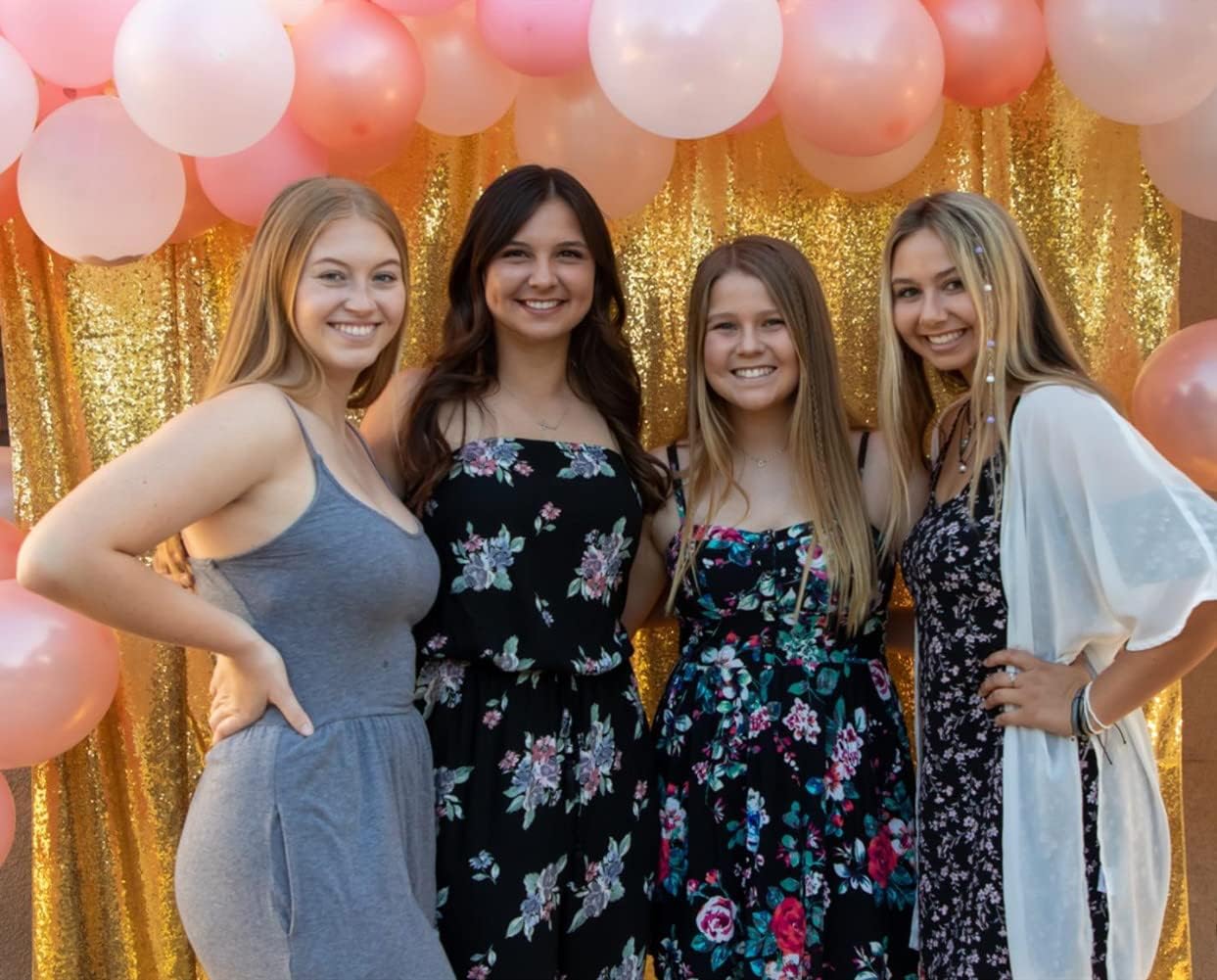 • 【Sparkly Gold Backdrop 】Mesh fabric covered with dense round sequins. Keep the sequin backdrop in the lamplight, it sure will give you a big surprise.