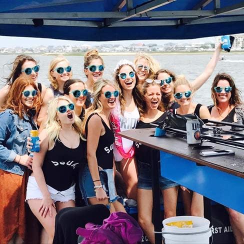 • THE FULL SET---This Bachelorette Party supplies kit contains a total of 1 Pair of white 'Bride' Sunglasses, 9 Pairs of Turquoise 'Brides tribe' Sunglasses. Great idea for Bachelorette party.