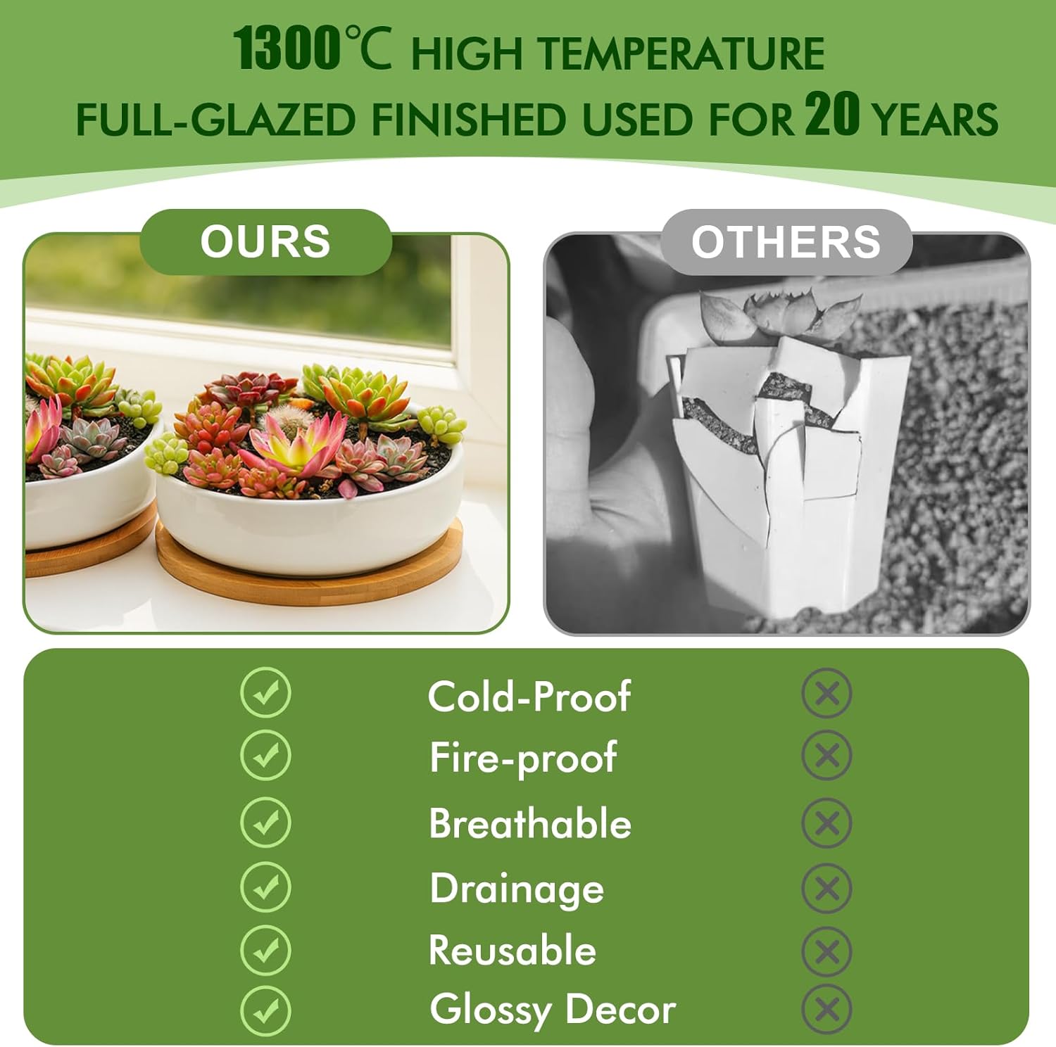 • Premium Shallow Plant Pot:ZOUTOG ceramic pots for plants are fired at high temperature through a unique process,no odor,durable,white and elegant appearance,and packaged in a well-wrapped box,suitable for any scene.