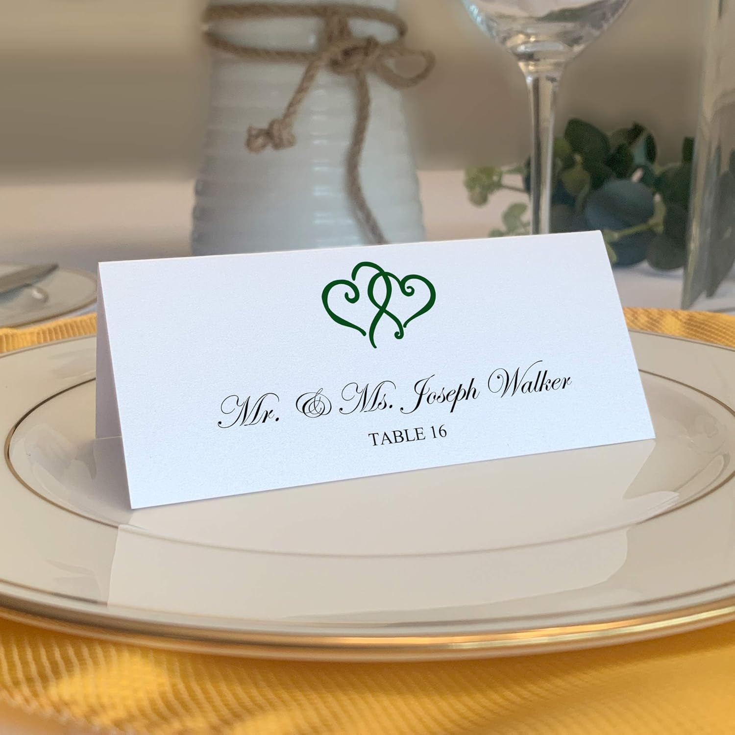 Linked Hearts Place Cards, Hunter Green (Choose Color), Set of 150, Pre-cut and Scored - Wedding, Party, Dinner, and Special Events - Made in the USA