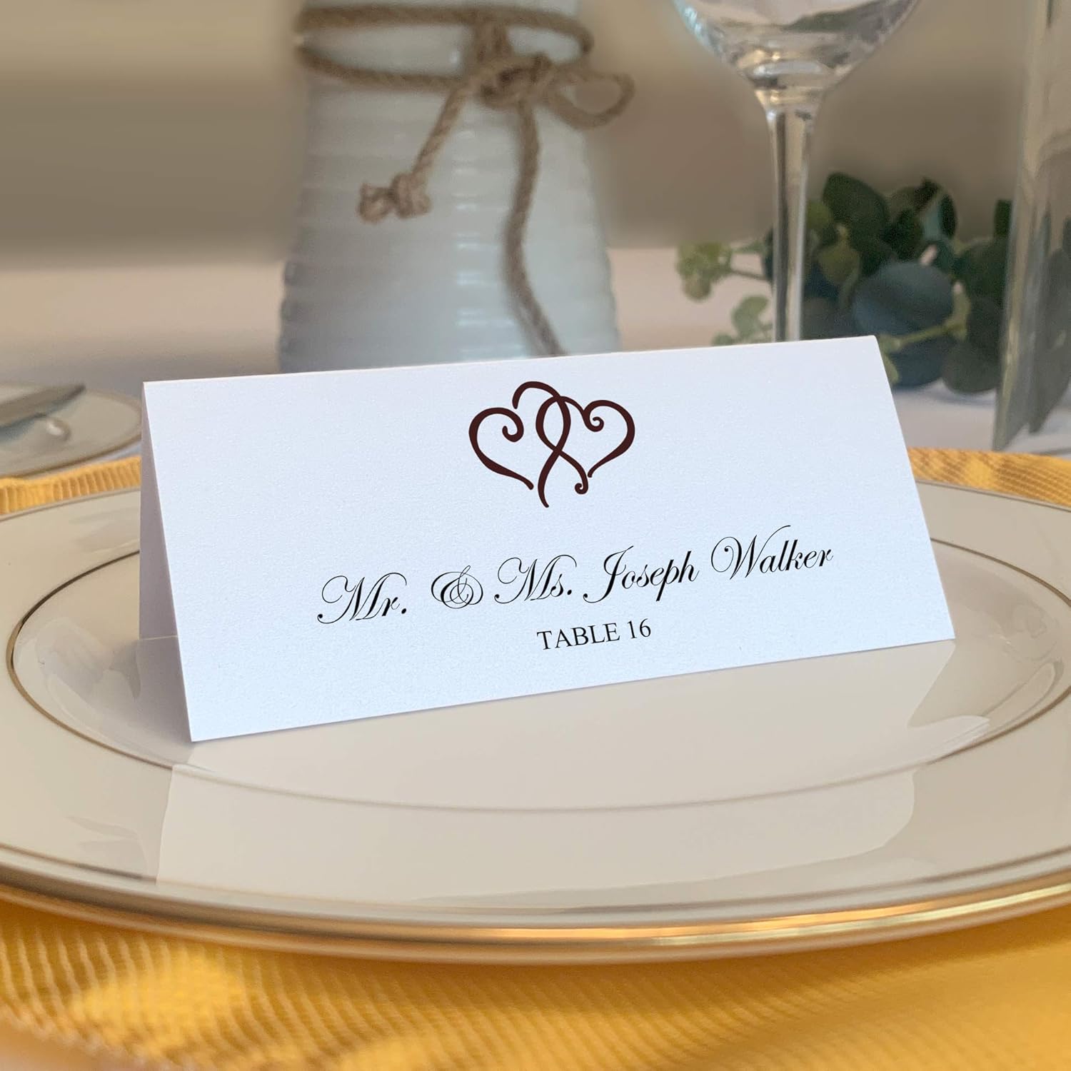 Linked Hearts Place Cards, Chocolate (Choose Color), Set of 60, Pre-cut and Scored - Wedding, Party, Dinner, and Special Events - Made in the USA
