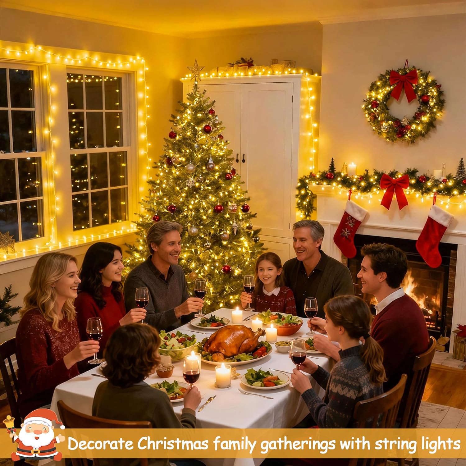 • Widely Use & Christmas Decoration Use: The warm white indoor led Christmas string lights are versatile, suitable for bedroom, house, patio, wall, garden, yard, lawn, porch, fireplace, etc. The outdoor Christmas lights use ultra-high-intensity LEDs to create soft and bright lighting, setting the perfect festive atmosphere for Christmas, birthday parties, family dinners, or weddings, both indoors and outdoors. Watch as your backyard transforms into a whimsical wonderland during the Christmas season!