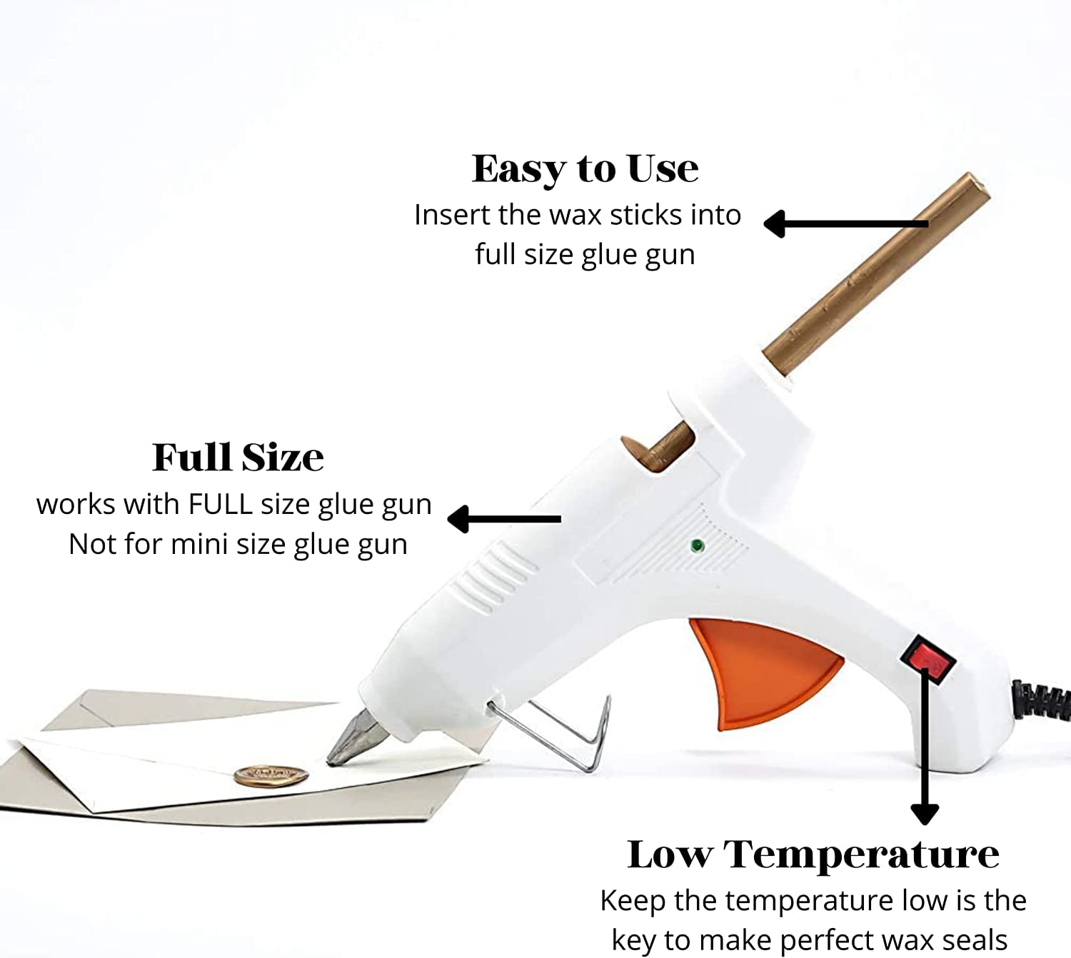 • Easy To Apply - Easily use together with a low-temp large standard 0.44" glue gun. Not designed for mini glue guns! If you plan to seal dozens of envelops, this is the most efficient method. To avoid the wax stuck to the stamp, you may put stamp on an ice pack in between every 4-5 impressions. Please remember the glue gun was designed for glue stick which requires a much higer melting temperature than the wax, so to keep the temperature low is the key.