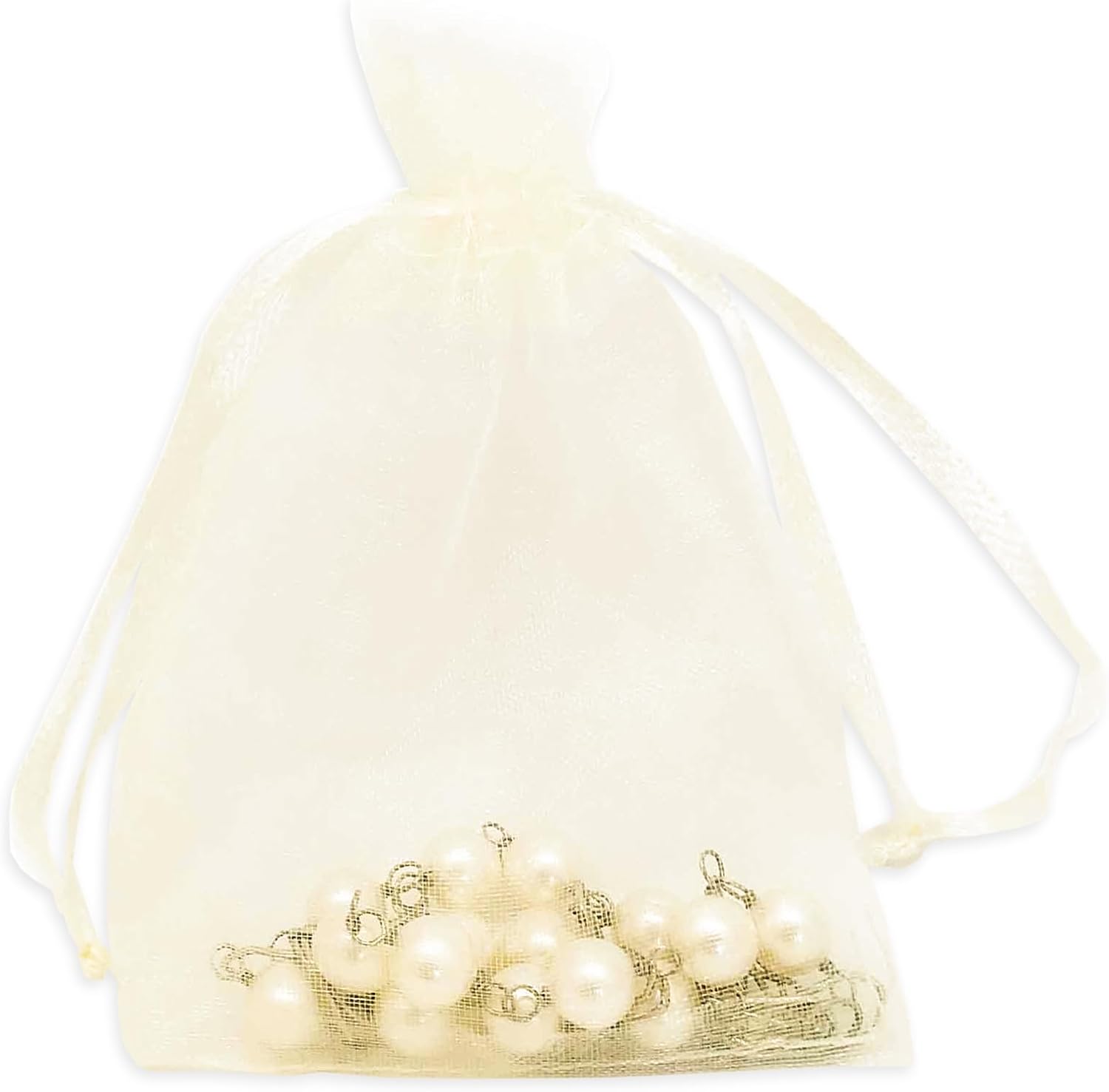 TheDisplayGuys 100-Pack 3x4 Cream Sheer Organza Gift Bags with Drawstring for Jewelry, Candy Bags, Treats, Wedding Favors Small Mesh Pouches