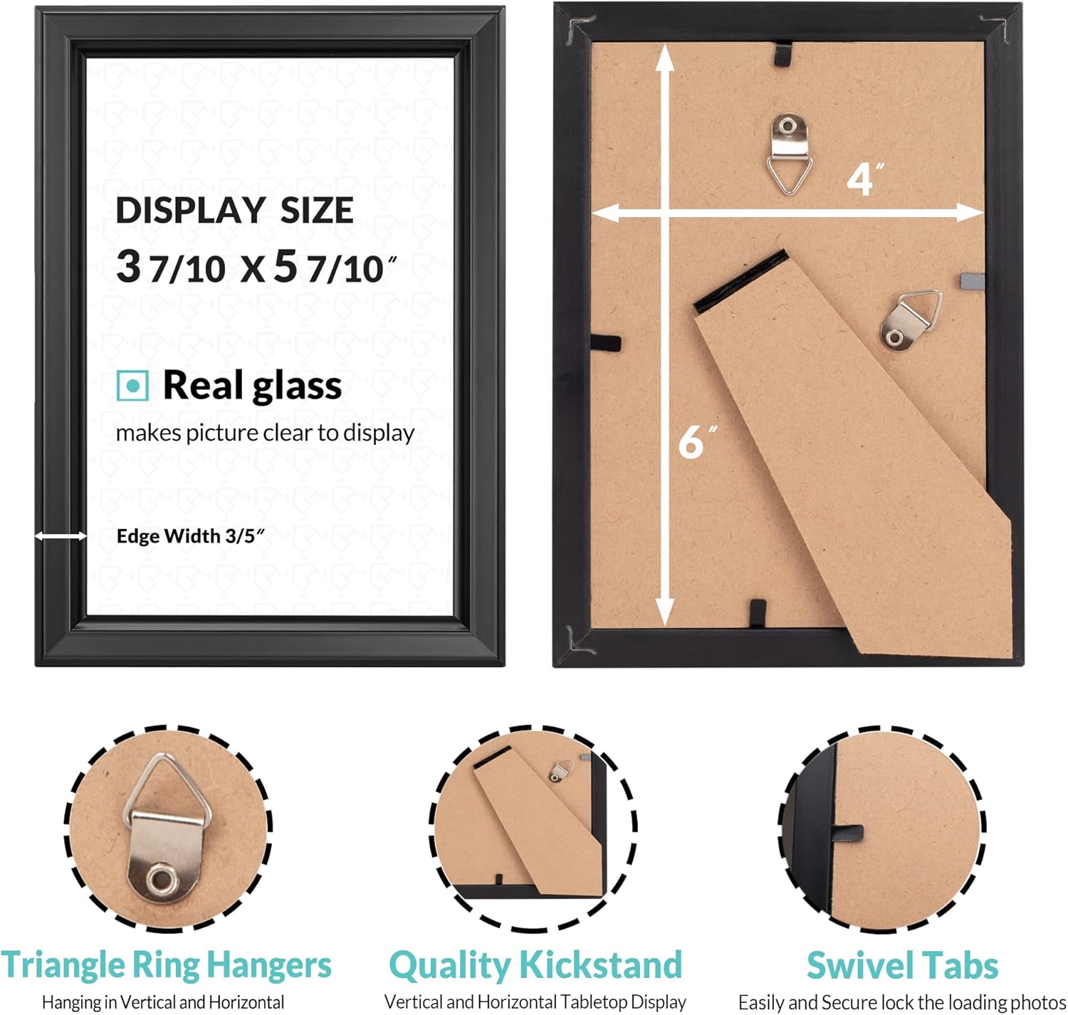 • PACKAGE INCLUDES - 12 Packs black frames, fits standard 4x6 inches pictures, photos, prints, with real glass to protect against dust and moisture. Tips: wall hooks or fasteners are not included in the package