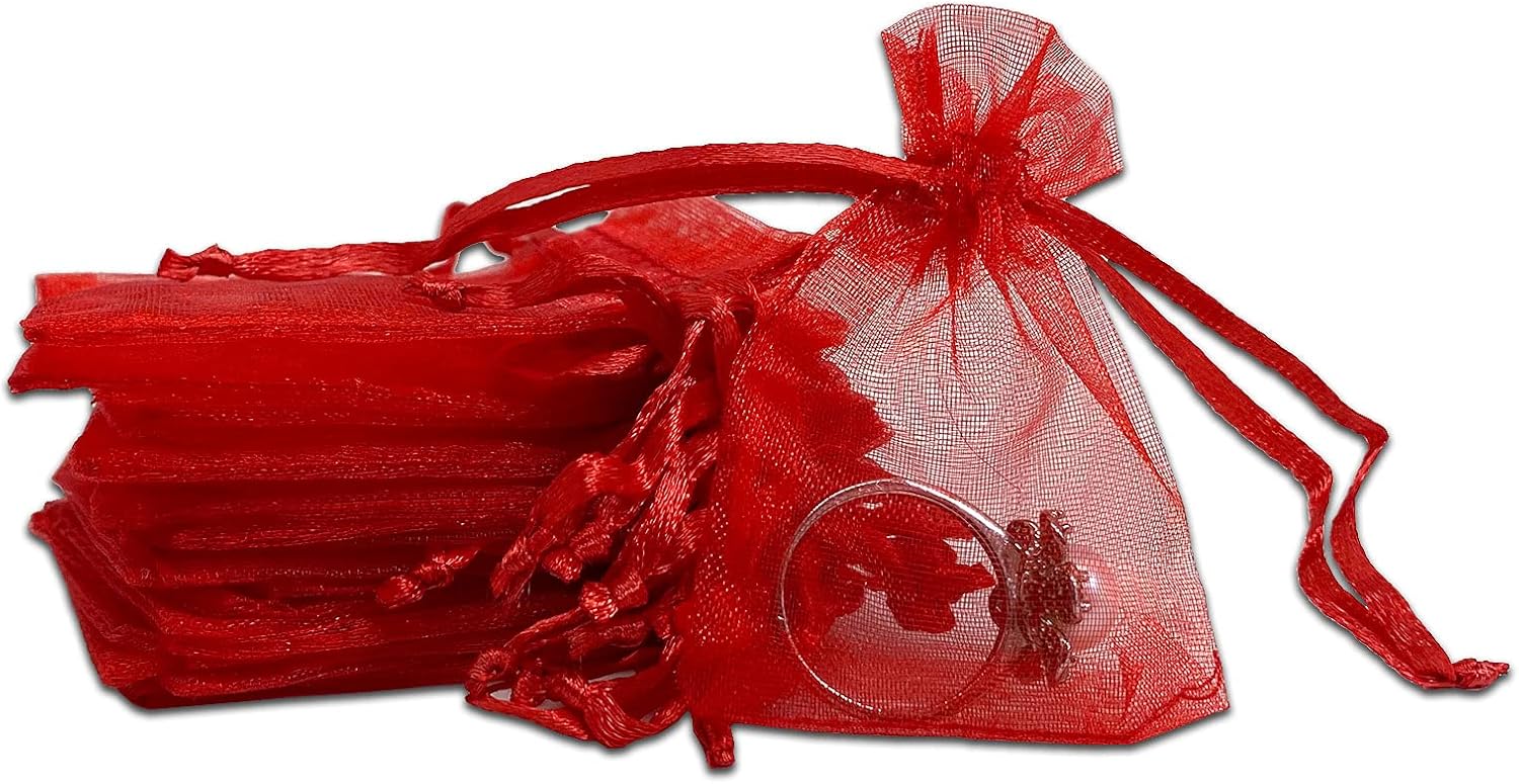 TheDisplayGuys 48-Pack 2" x 2-3/4" Red Sheer Organza Gift Bags with Drawstring, Jewelry Candy Treat Wedding Party Favors Mesh Pouch