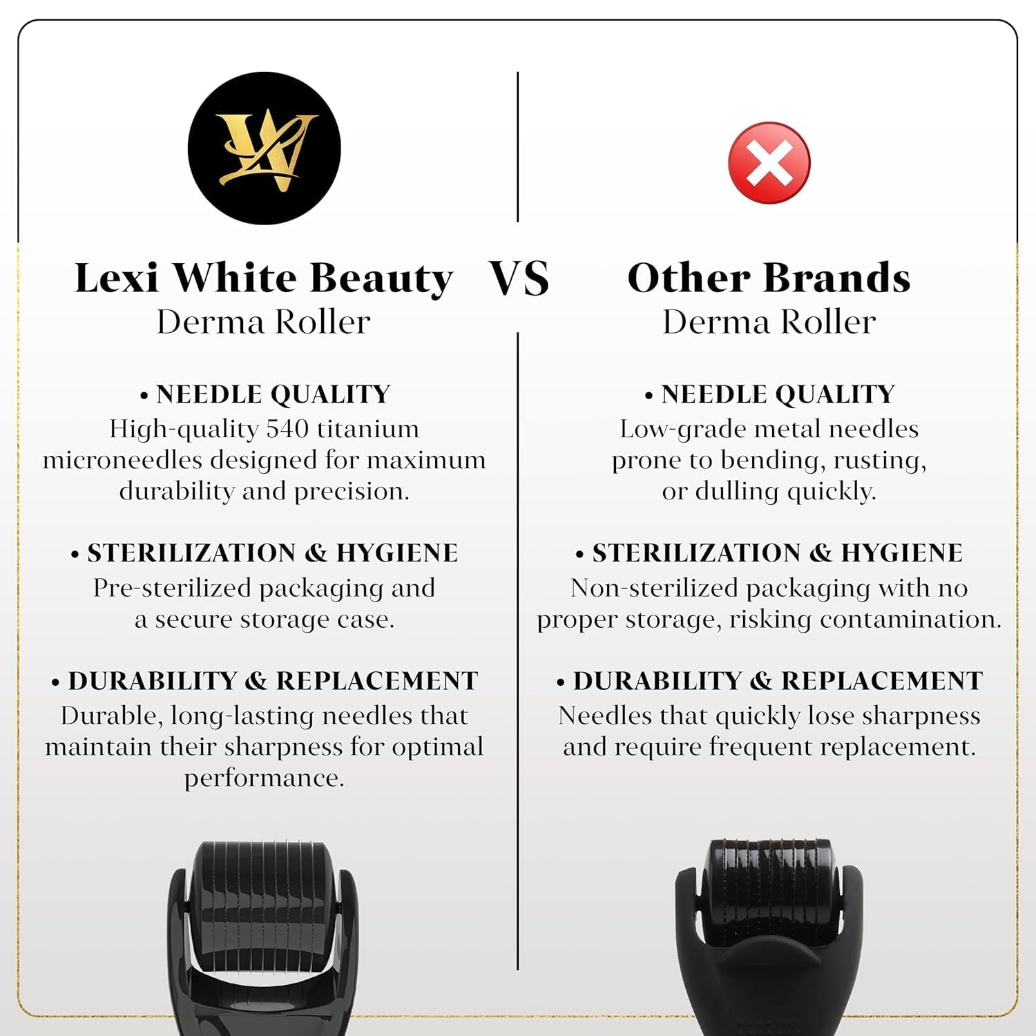 • Trusted Brand – Lexi White Beauty – As seen on top beauty platforms, Lexi White Beauty’s derma roller is designed for safe, consistent use. Protected by our 100% refund or replacement satisfaction guarantee.