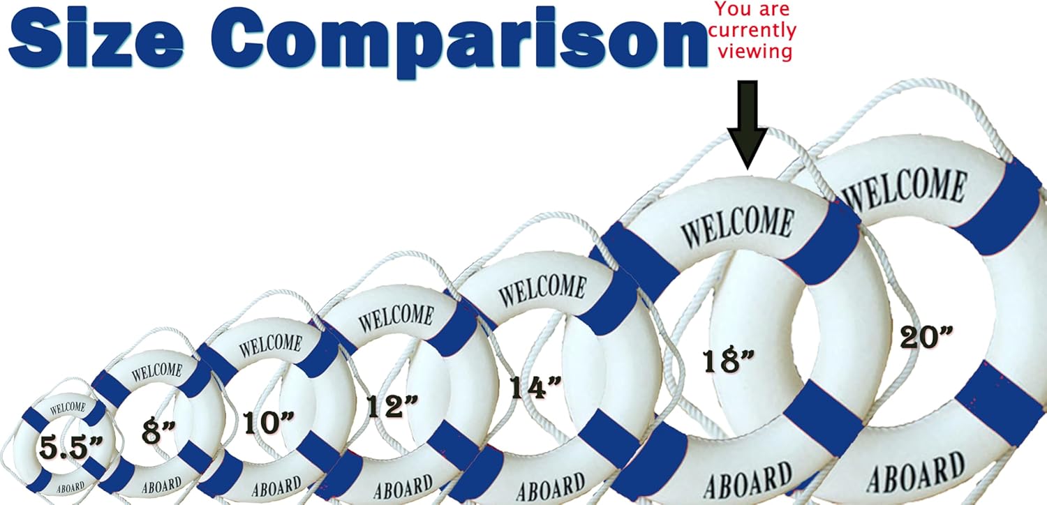 MorroMorn Lifebuoy Wall Hanging Decor - Welcome Aboard Mediterranean Style Home Decoration (Navy, 18")