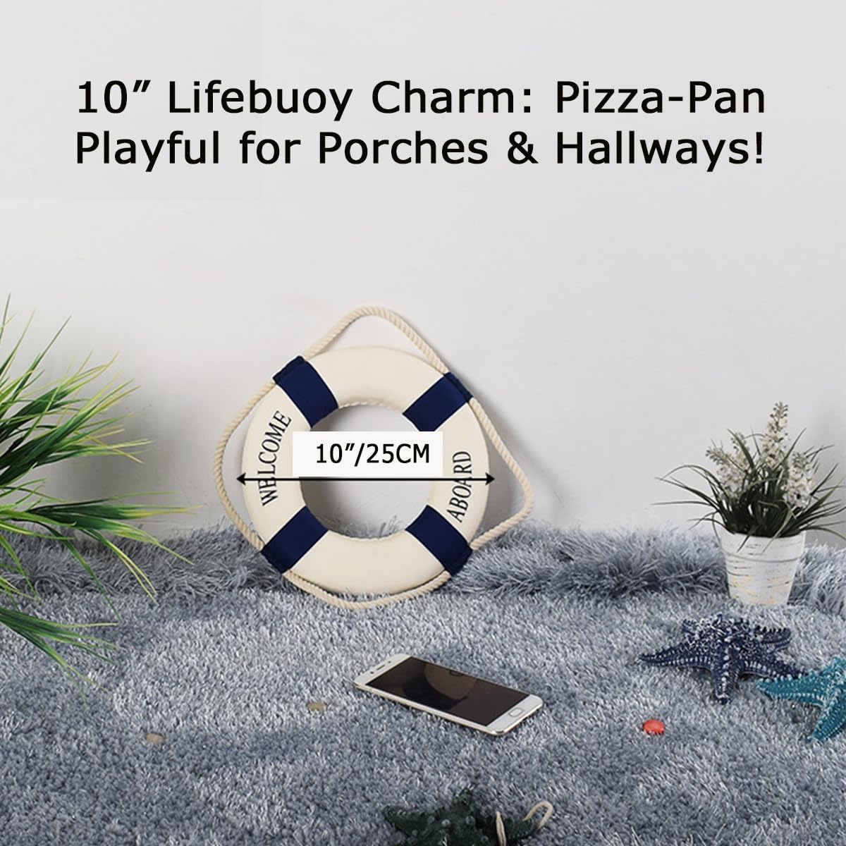 MorroMorn Lifebuoy Wall Hanging Decor - Welcome Aboard Mediterranean Style Home Decoration (Navy, 10")