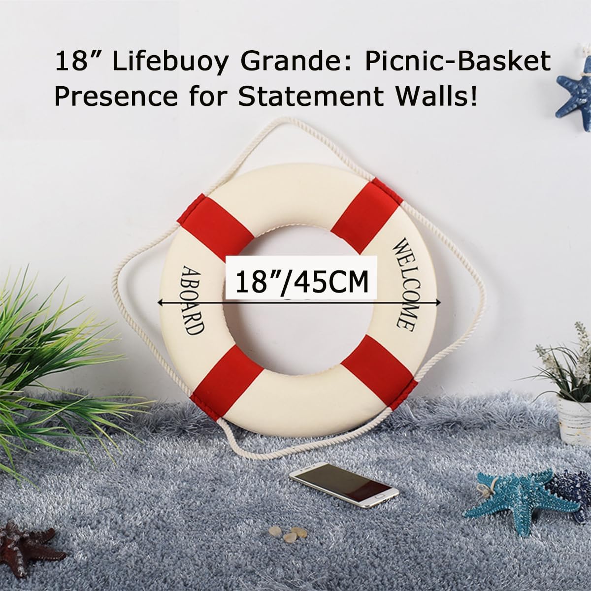 MorroMorn Lifebuoy Wall Hanging Decor - Welcome Aboard Mediterranean Style Home Decoration (Red, 18")