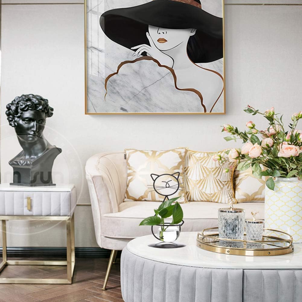 • UNIQUE DESIGN: Creatively designed Cat frame combined with glass vase adds modern sense and stylish your living surroundings. Simple and elegant appearance design fits to any home decors and easy to match ,it will be best and more heartwarming gift.