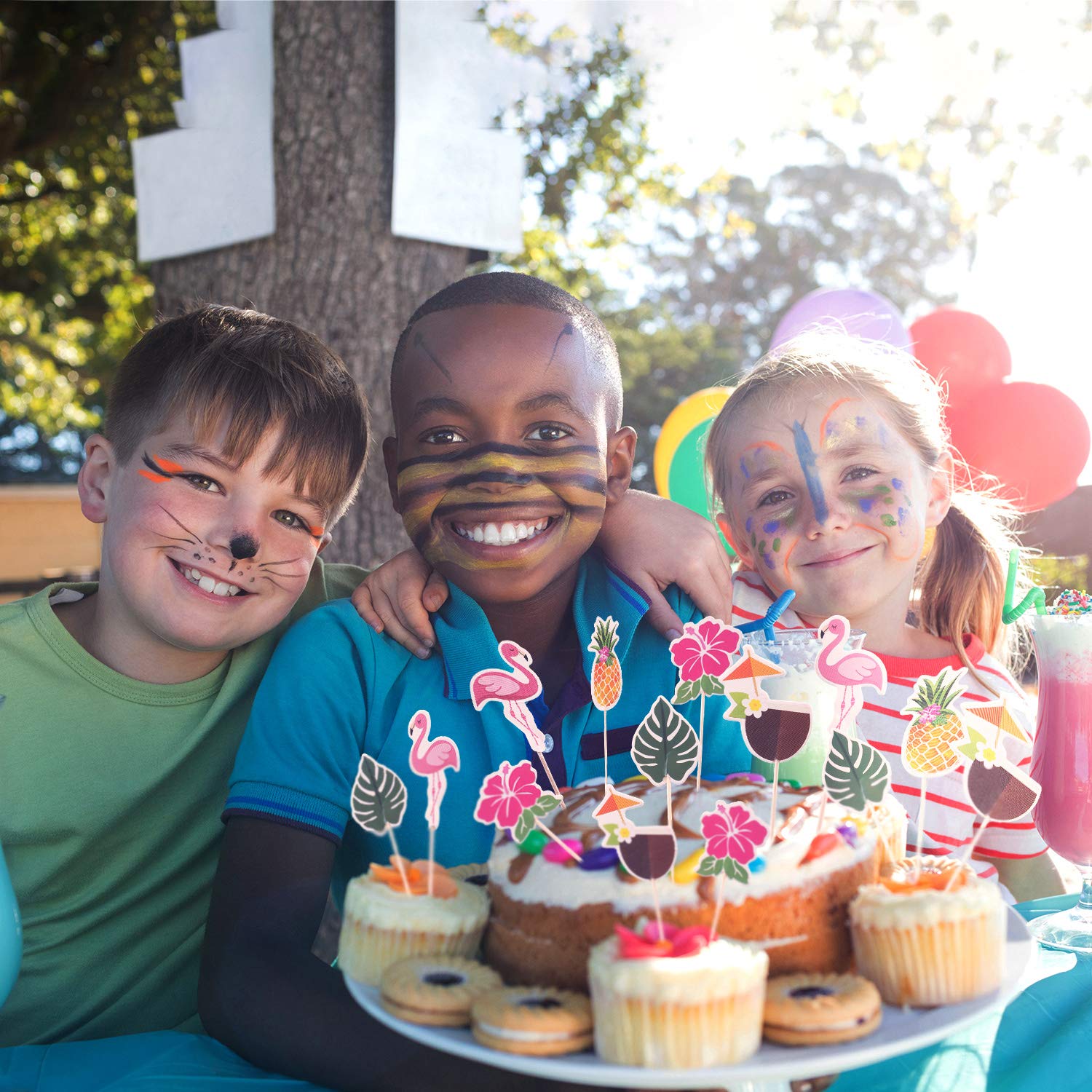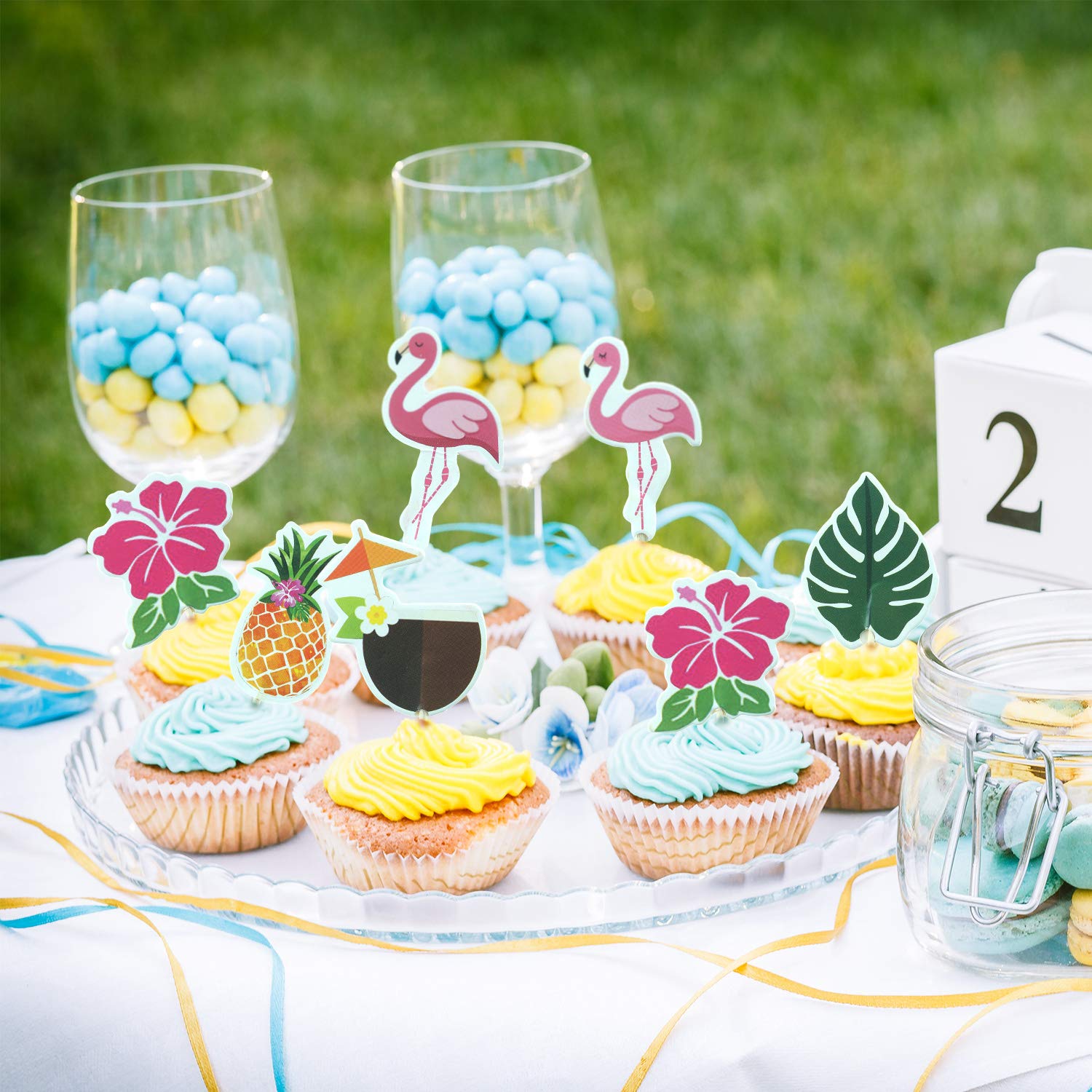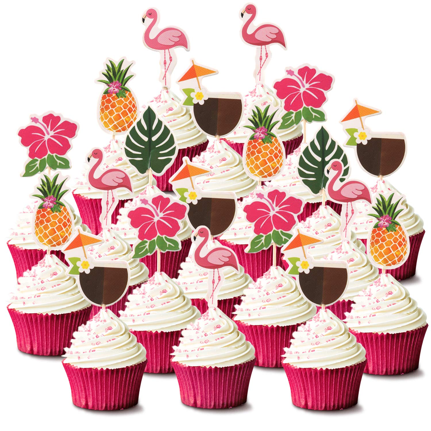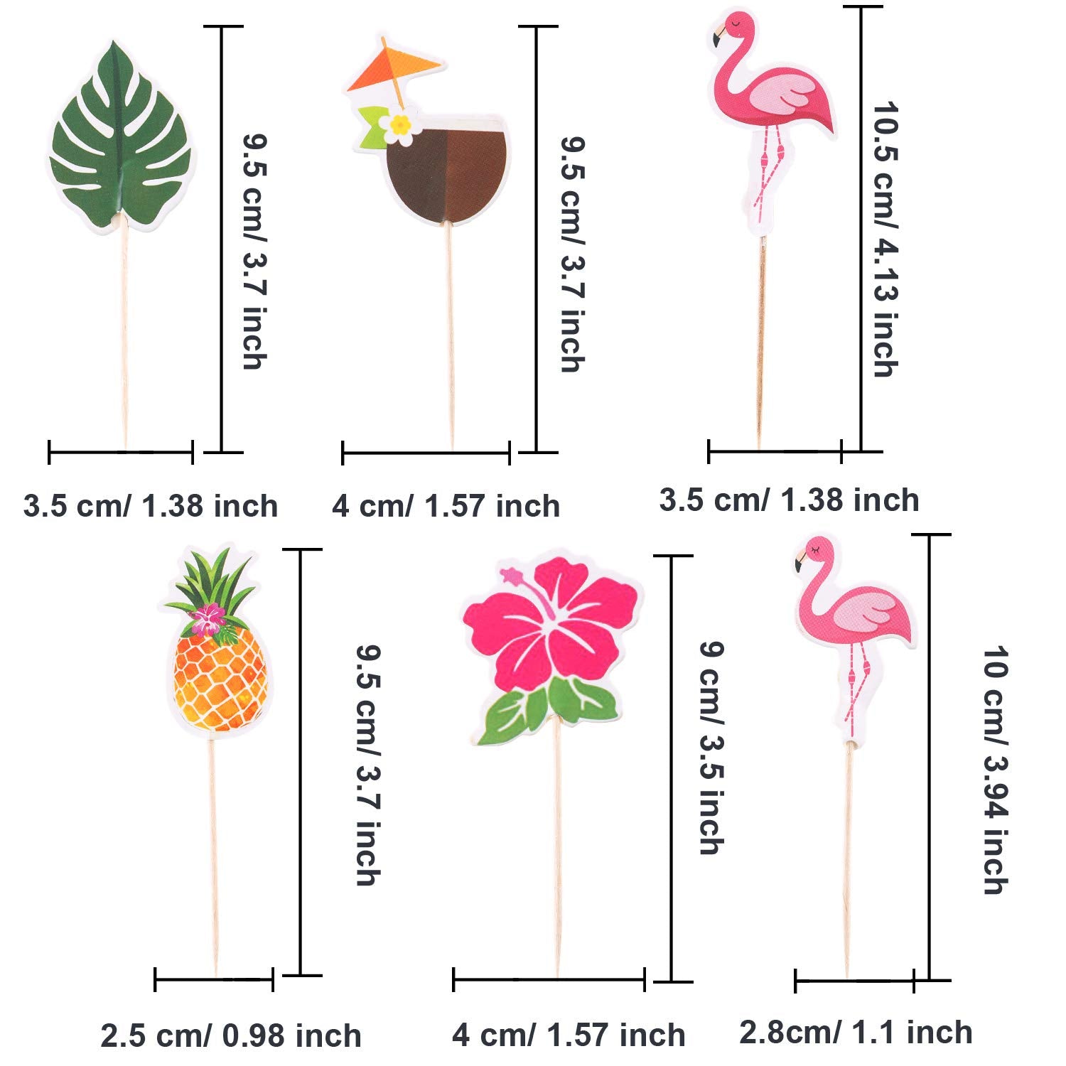 • Quality material: the hawaiian cupcake toppers are made of cardboard with toothpicks sticks, which is non-toxic and odorless, durable enough and not easy to break, safe and reliable for you to use