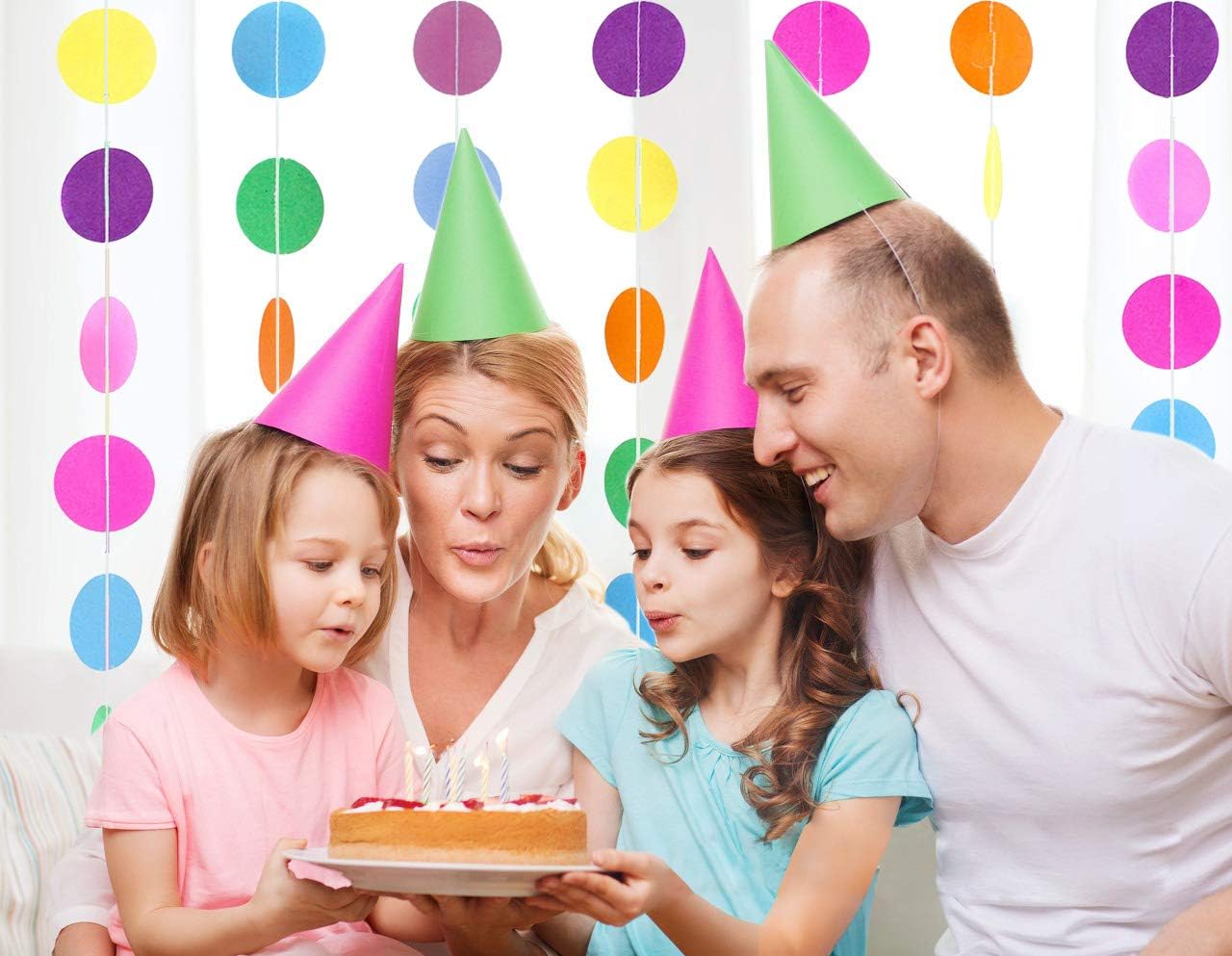 • What You Get: MerryNine Paper Garland Circle Polka Dots Set comes with 5 pack, each pack paper garland is 13 Feet (Total 65 Feet) and each circle dot is approximately 2 inch in diameter