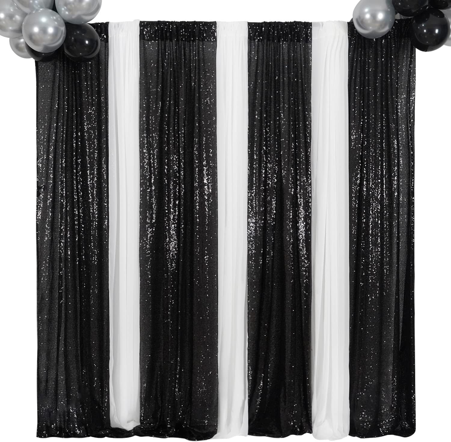 Poise3EHome 2ft x 8ft Black Sequin Photography Backdrop Curtains 2 Panels for Party Decoration, Black