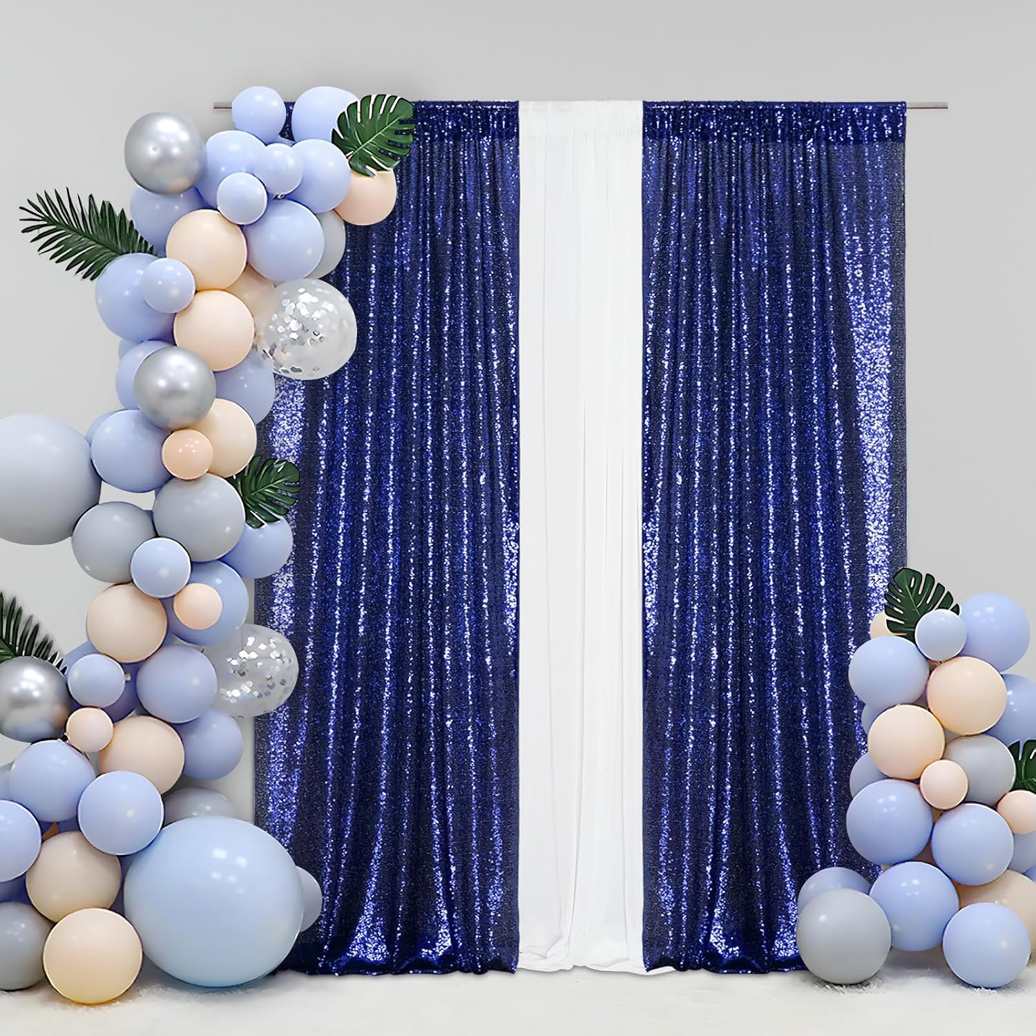 Eternal Beauty Sequin Backdrop Curtains, 2x8 Ft-2 Panels Navy Blue Back Drop for Shimmer Photography Party Wedding Birthday Decor