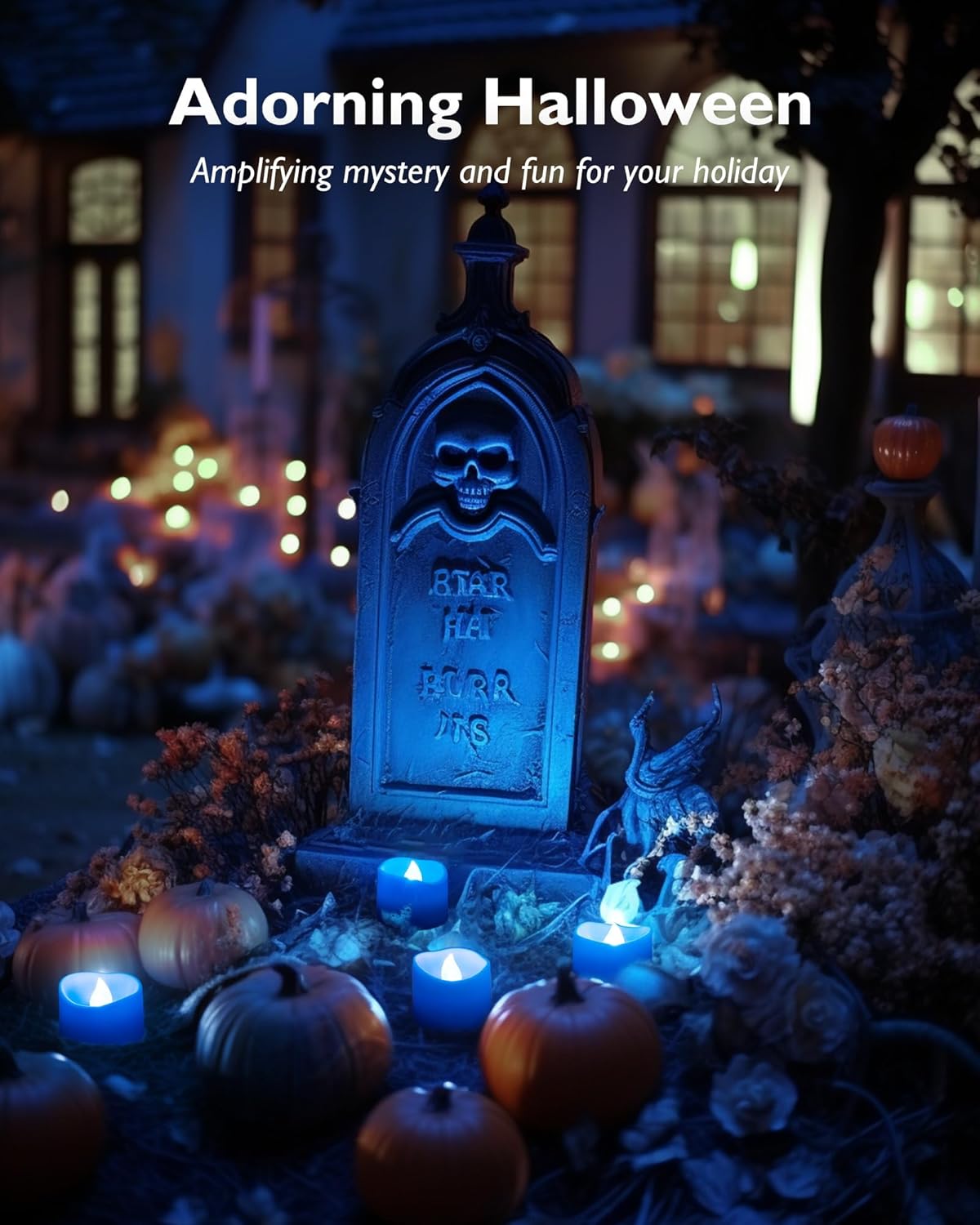 Homemory Blue Tea Lights Candles Battery Operated, 200+Hour Flameless Flickering Fake Electric LED Colored Tealights Candles for Wedding Table Decor, Theme Party, Aniversary, Proposal, 24-Pack