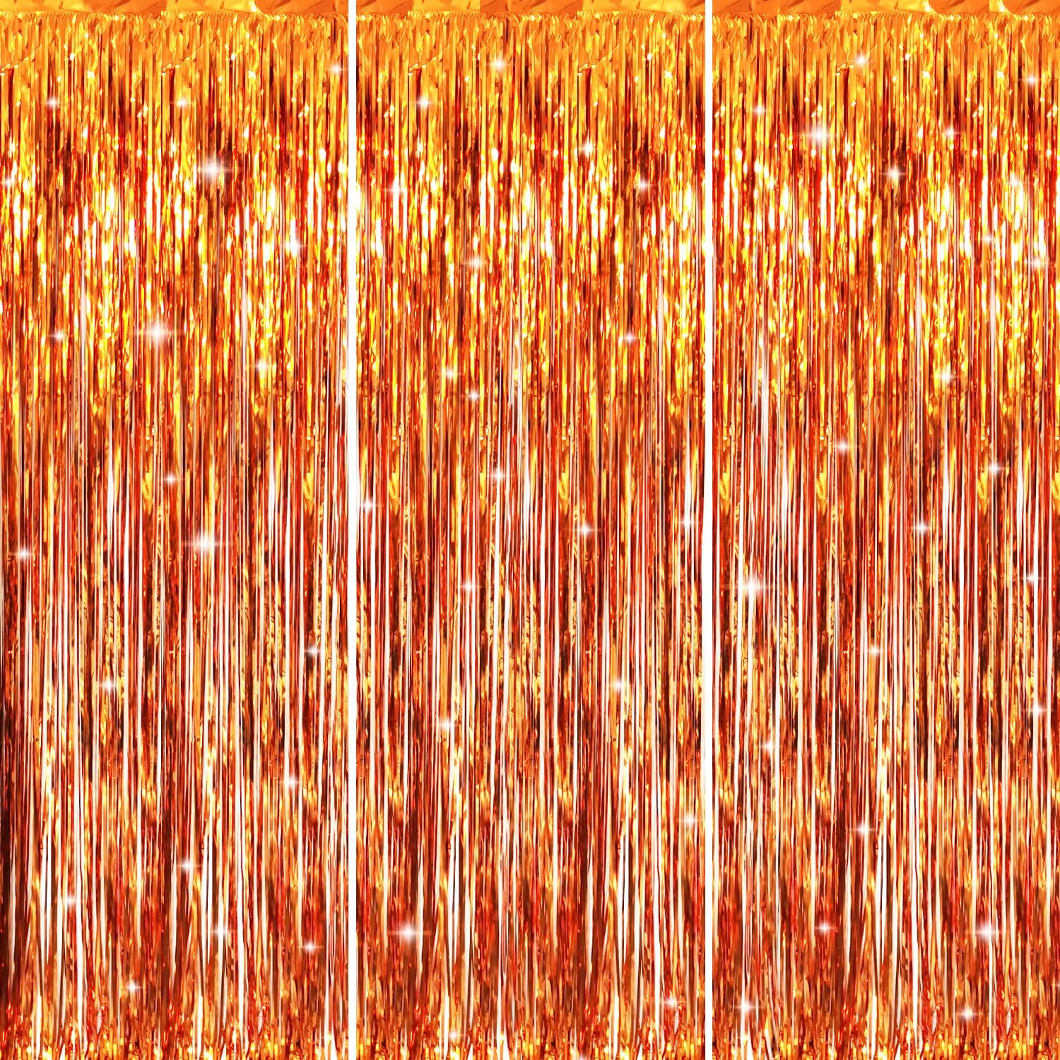• Package Includes:3 pack orange foil fringe curtains,3.2 ft x 8.2 ft each,suitable for hanging on a door or coverage a wall fully