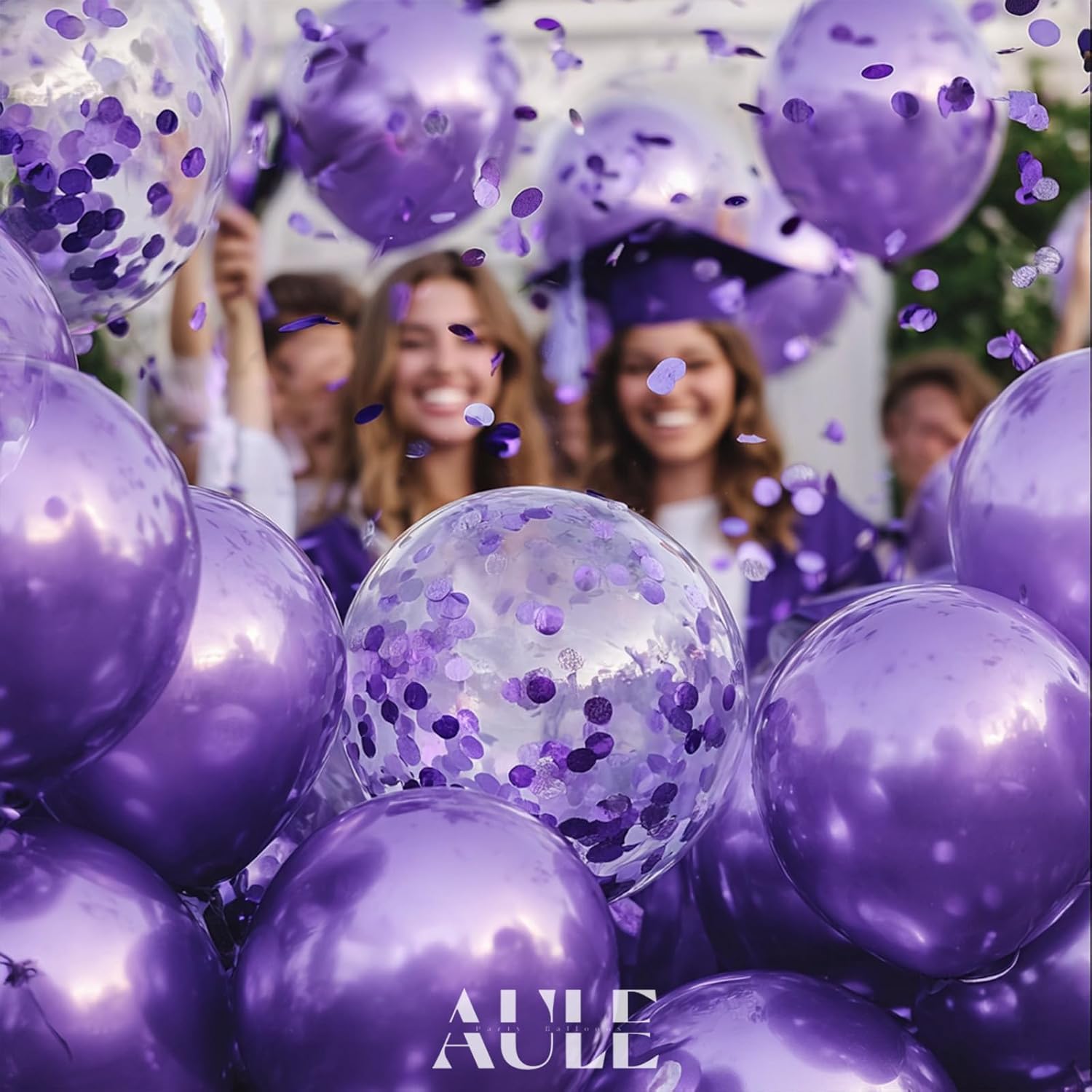 AULE Party Balloons Pack of 42 - Metallic Balloons & Confetti Balloons and 64ft Ribbons - 12 Inch Purple Balloons Decorations Set