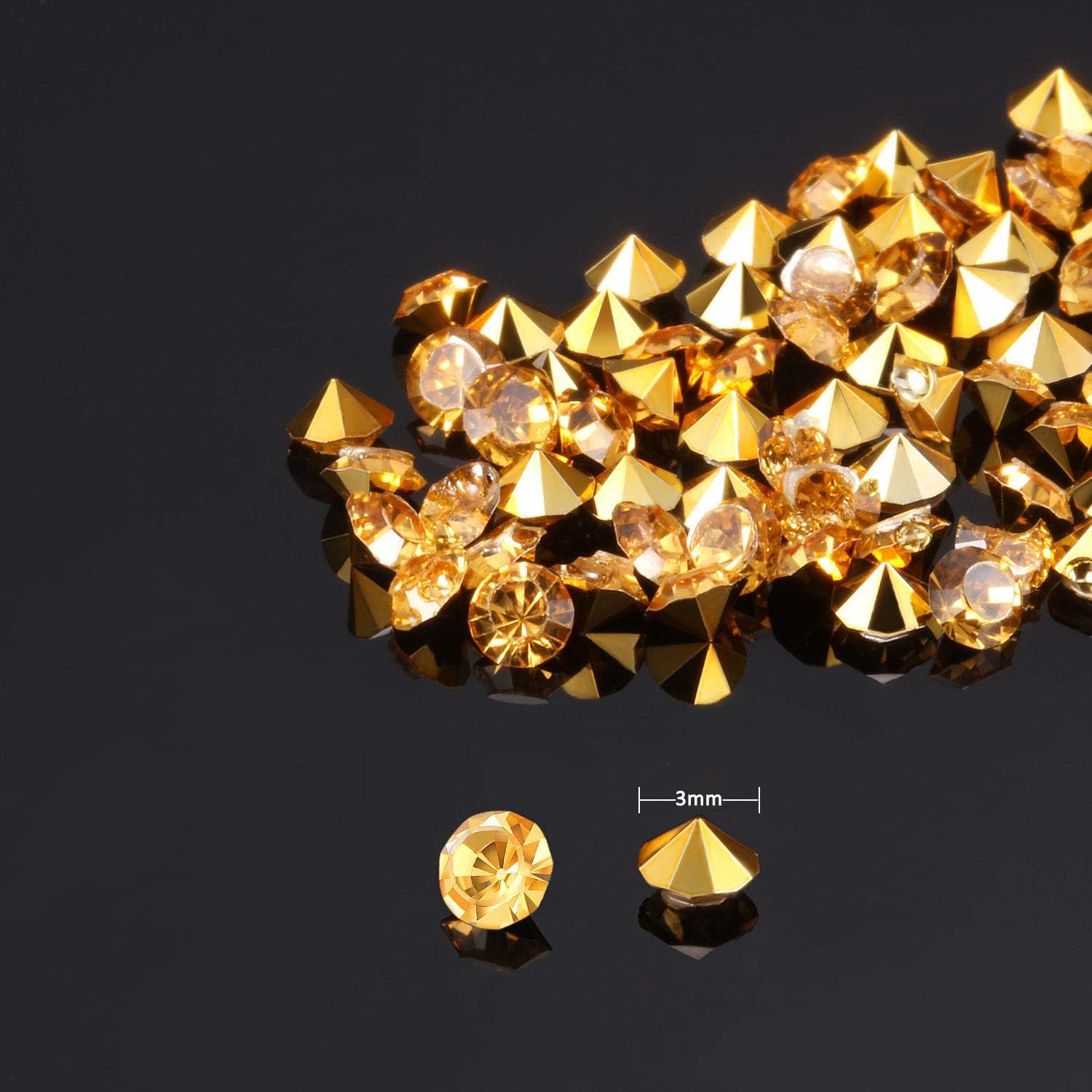 • Quantity and size: package includes 10000 pack gold acrylic diamonds; Each pack diameter measures about 3 mm/ 0.12 inch (please note these are faux diamonds and not real diamonds)