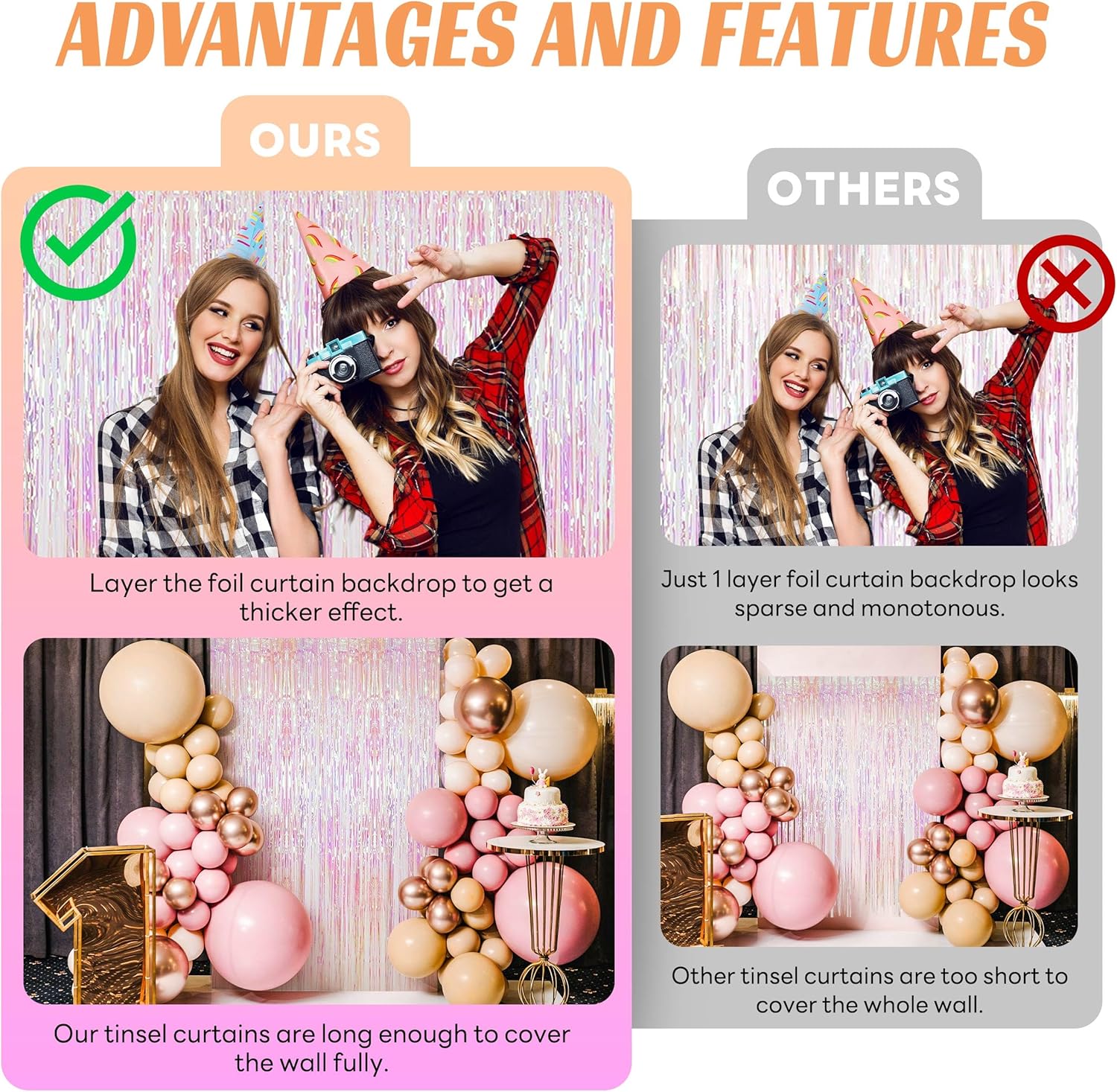 • Fantastic decoration:the beautiful tinsel backdrops are good for serving as party decorations, photography curtains, and so on; You will be surprised at the atmosphere and view they create