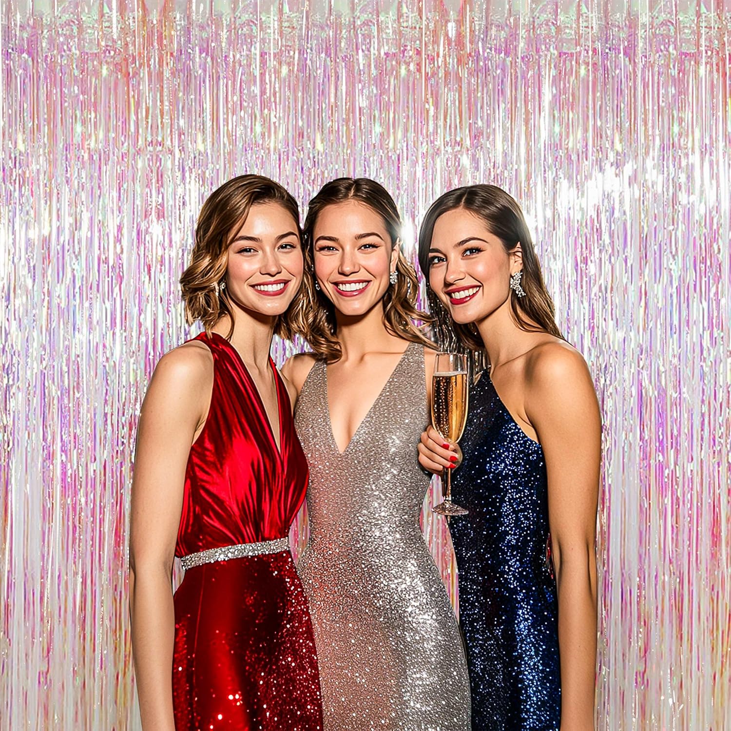 BTSD-home 4 Pack Iridescent Backdrop Transparent Clear Foil Fringe Curtain, Metallic Photo Booth Tinsel for Mermaid Frozen ERAS Wedding Birthday Baby Shower Bachelorette Party Decorations(8ft x 3ft)