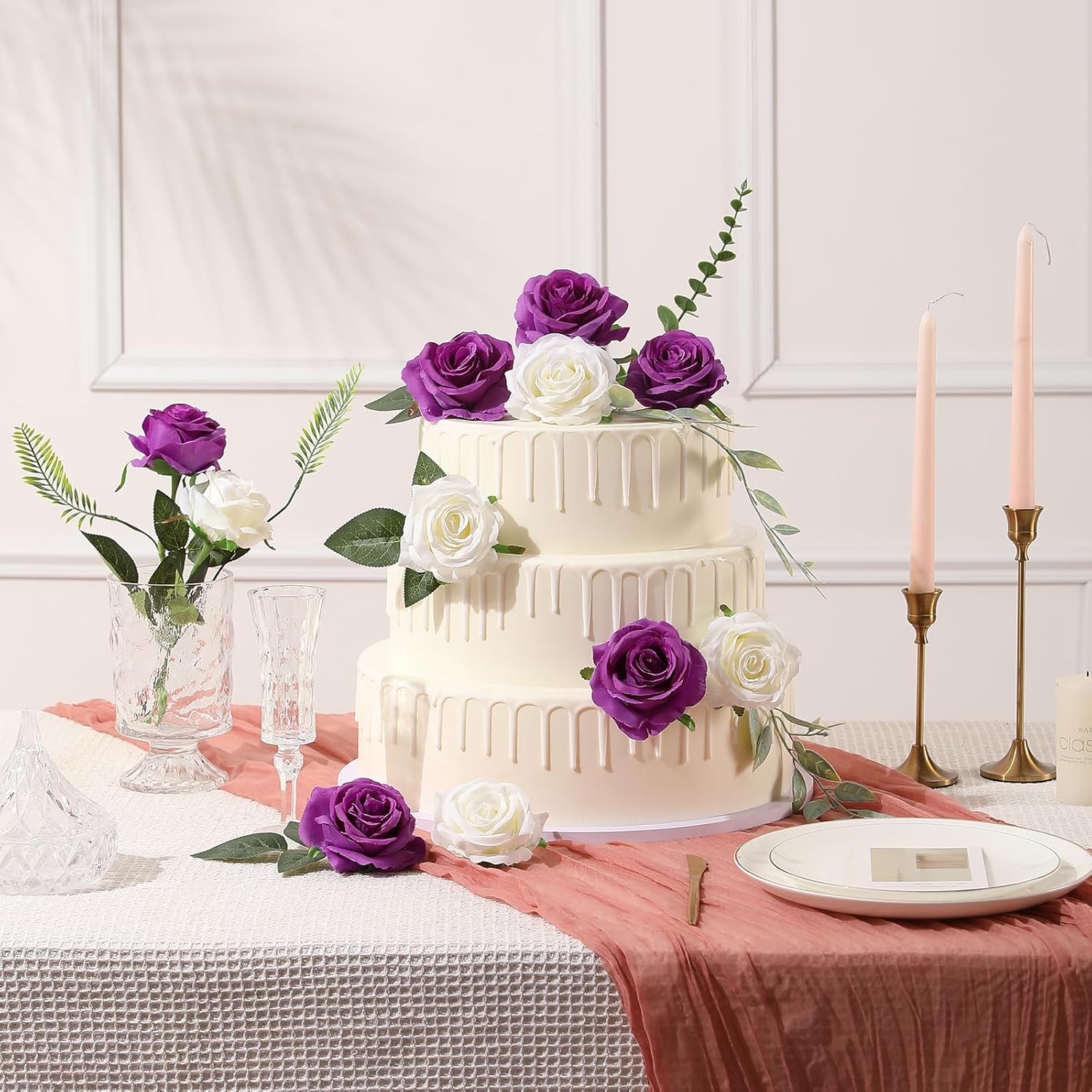 Tifuly Purple Roses Artificial Flowers - 12 pcs Realistic Single Long Stem Fake Silk Roses Bouquet for Party Home Wedding Centerpiece Office DIY Decor
