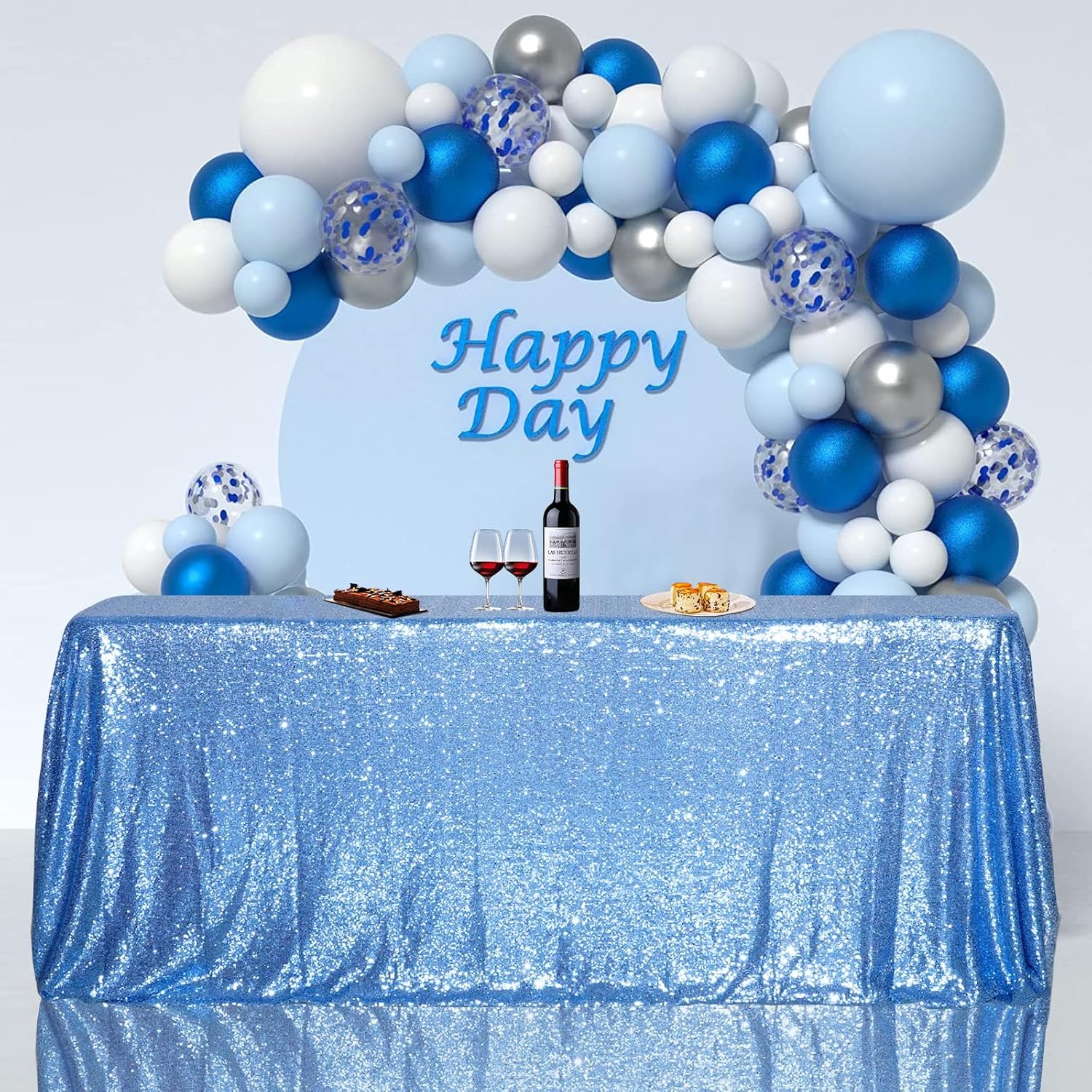 SquarePie Sequin Tablecloth 90 x 132 Inch Baby Blue Sparkly Table Linen for Wedding Party