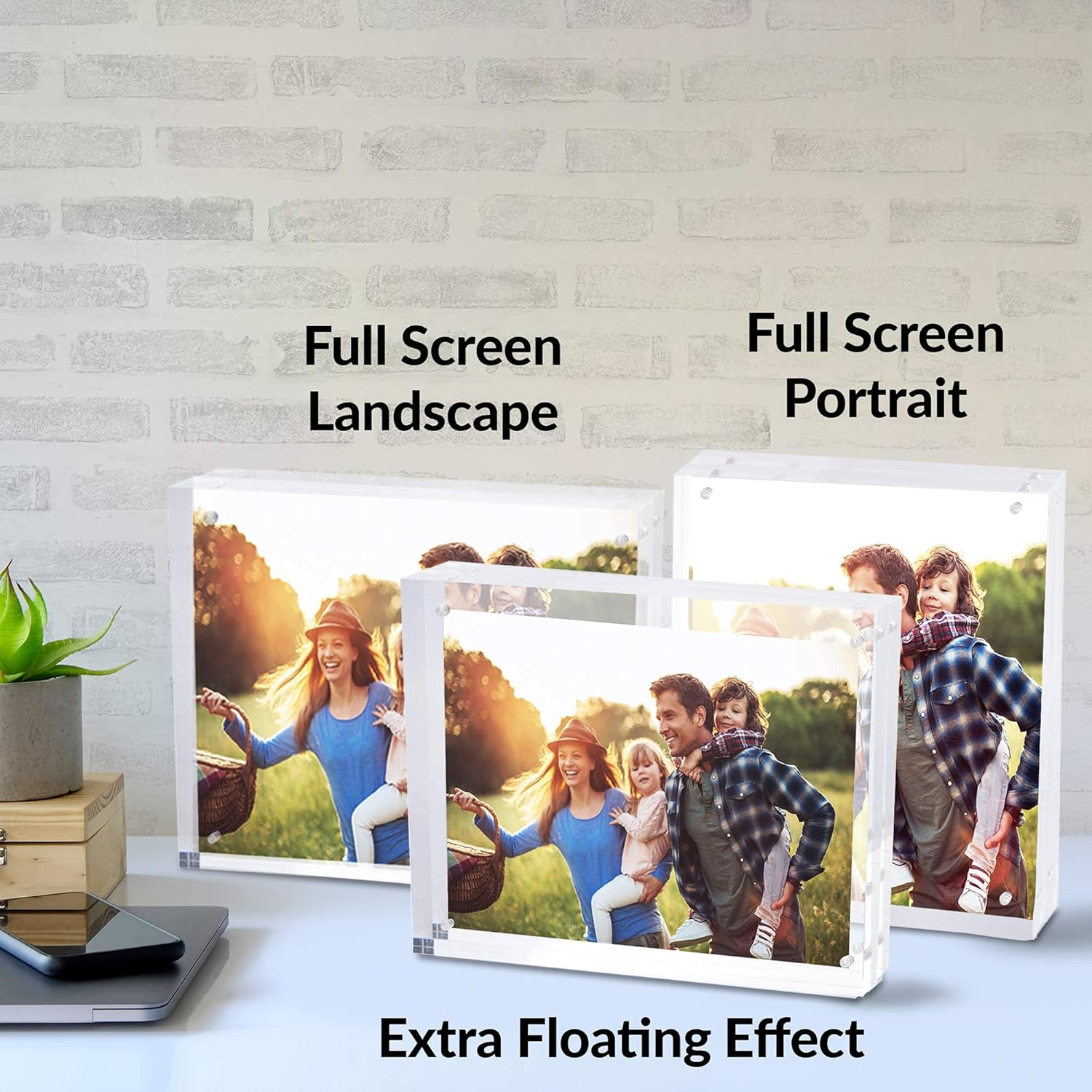 SimbaLux Magnetic Acrylic Picture Photo Frame 8x10 inches 24mm Thick with UV Protection (1 Pack) Clear Glass Like, Double Sided Frameless Desktop Floating Display, Free Standing, 20% Thicker than Most