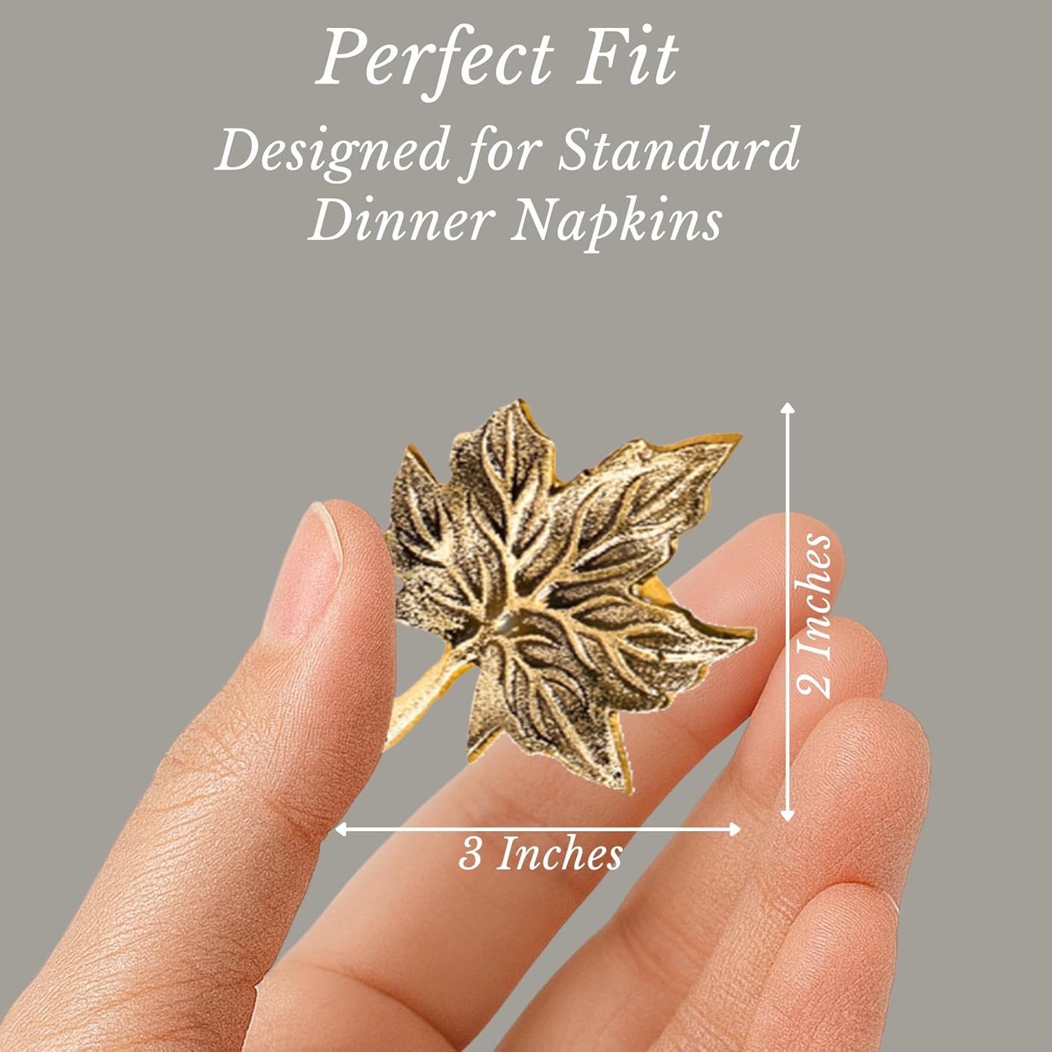 • ✔️ SET OF 12 - MIXED LEAF DESIGNS IN PERFECT SIZE: Each gold leaf napkin ring measures approx. 2.5" wide x 3" high, ideal for standard dinner napkins. Includes 12 uniquely crafted rings in assorted maple, holly, and birch leaf styles, bringing charm and variety to every table setting.