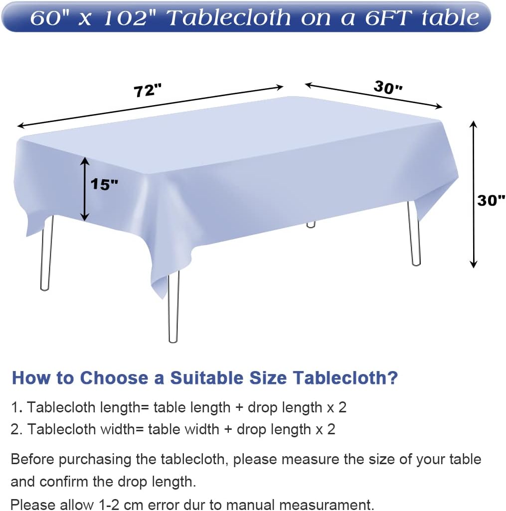 • Size: Please measure the size of your table before purchasing. The length of a floor-touching tablecloth should be the length of the table plus twice the height of the table. The pictures are for your reference only. Please refer to the size chart to select the most suitable tablecloth.