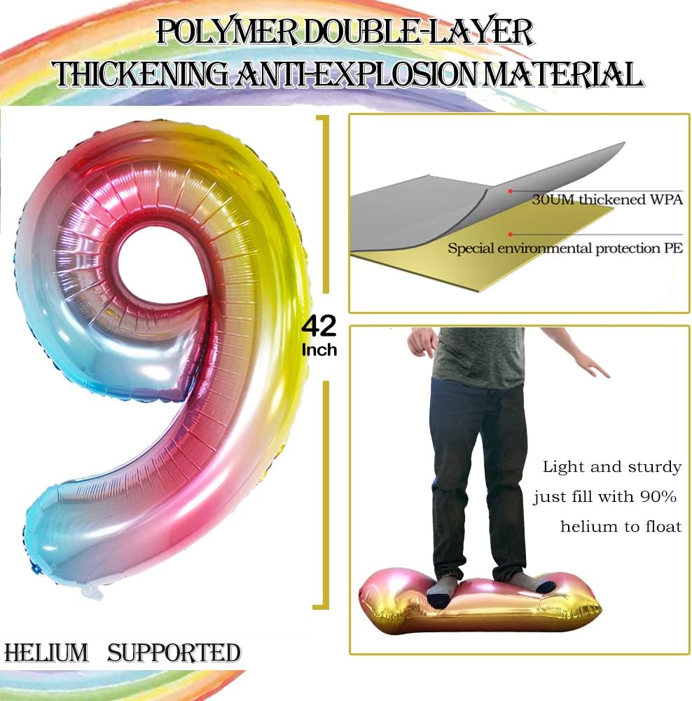 GOER Rainbow Foil Balloons Number 9,Huge Number Balloons for 9th Birthday Party Supplies Anniversary Decorations (3 pcs,42 inch,32 inch,16inch)