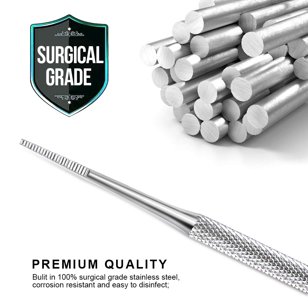• Upgraded Ingrown Toenail Lifters Of 2 Designs: We offer an angled toenail lifter (6.49 inch long), and a straight lifter (5.20 inch long), 2 different styles of lifter can meet all your need, help lift the corners of the nail to better get beneath it to remove the buildup, allow you to remove bad stubborn ingrown toe nail with ease, the little spoon-like ends work great for cleaning & removing old, dry skin
