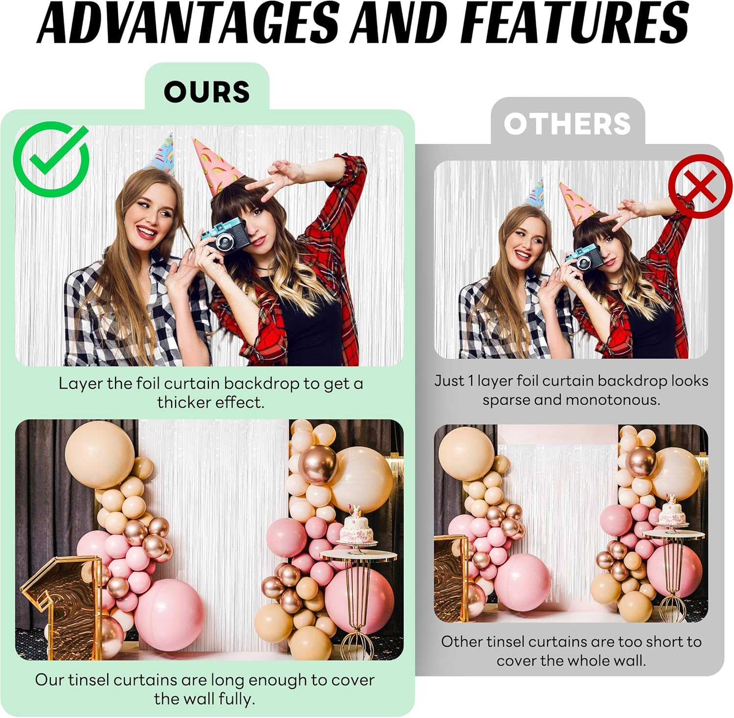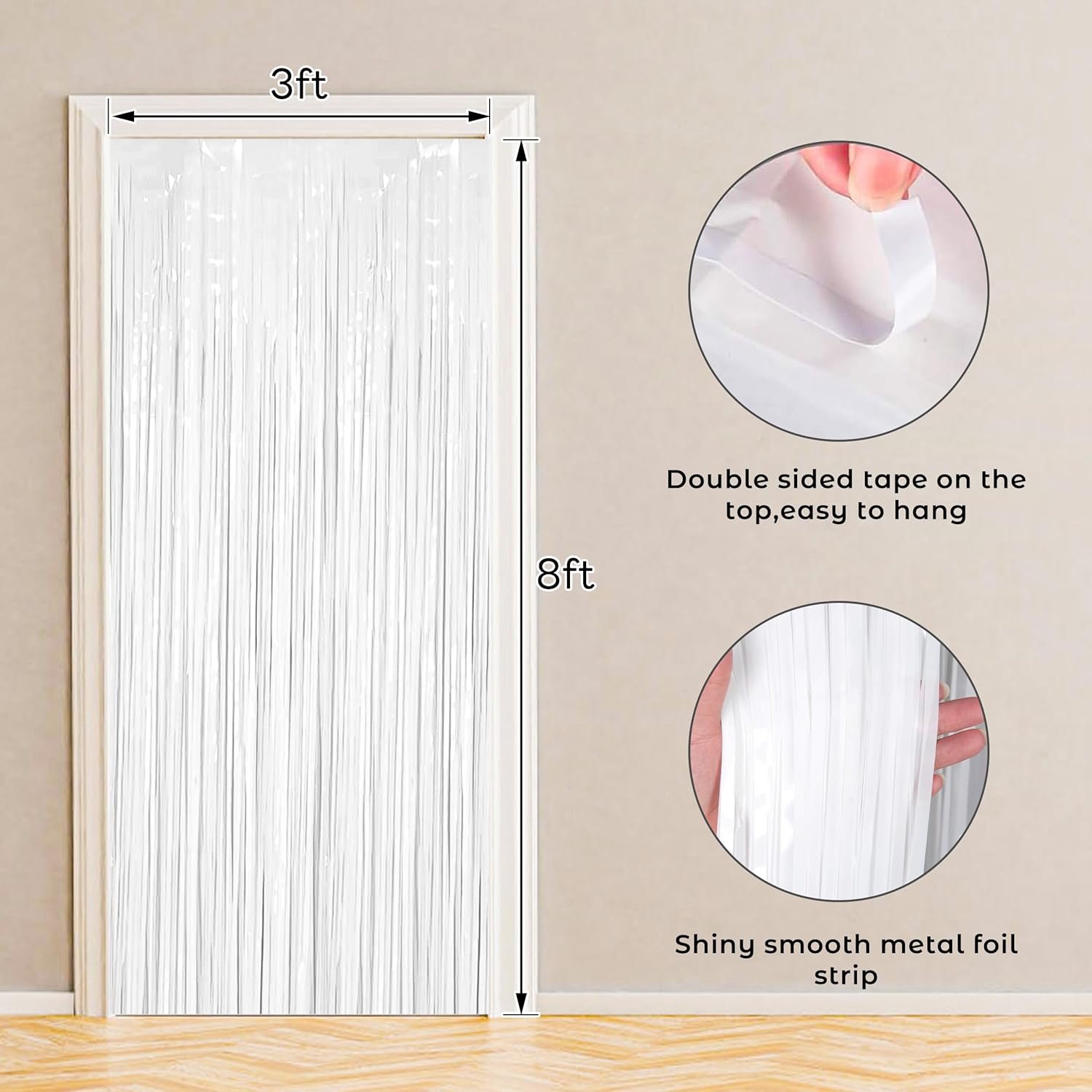 • Package contents:4 x white tinsel backdrop; Size (wide x drop):3 x 8 feet, wonderful accessories for decorating doors and walls