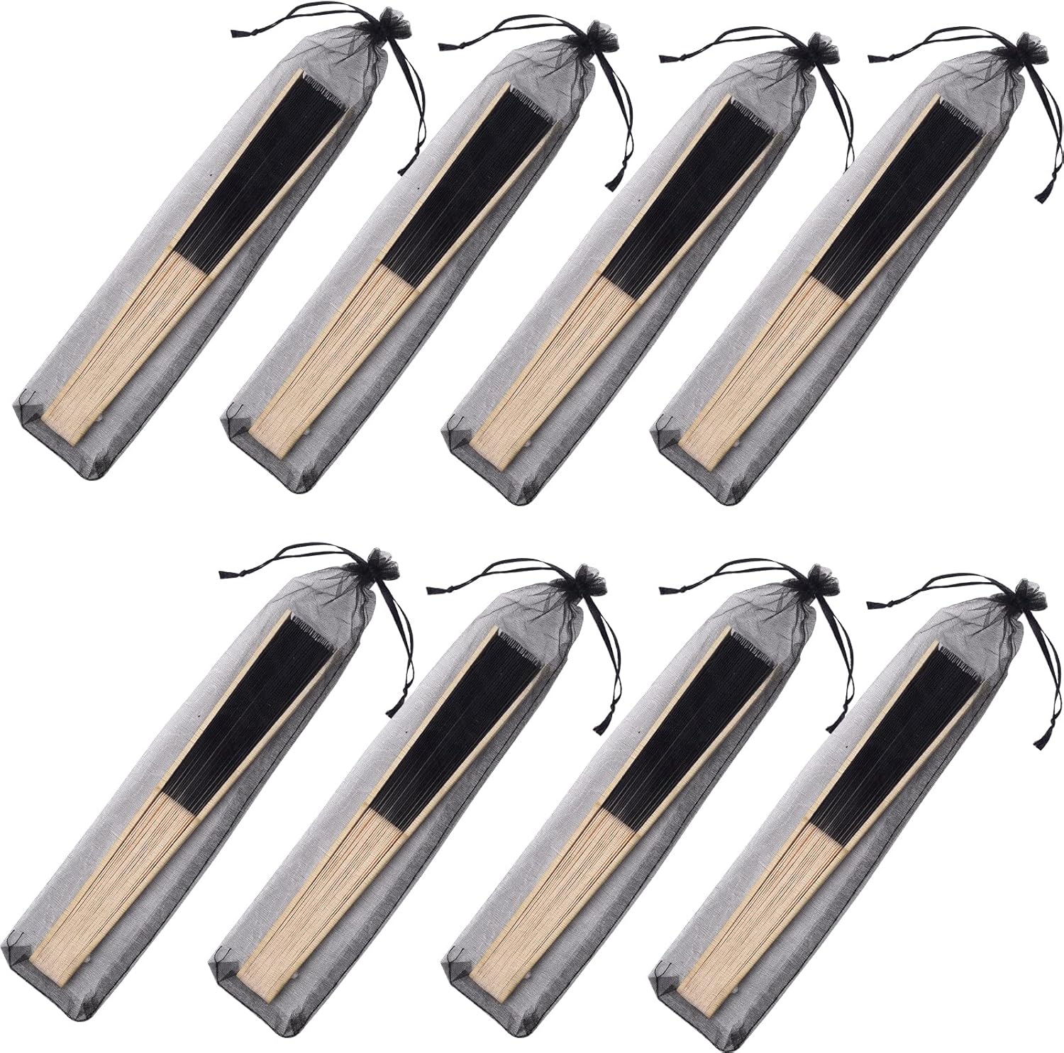 24pcs Imitated Silk Hand Fan Imitated Silk Fabric Bamboo Handheld Folded Fan Bridal Dancing Props Church Wedding Party Favors with Organza Bags (Black)