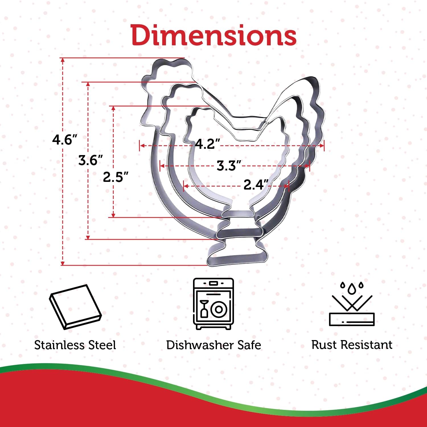 • Chicken-Shaped Design For Farm-Themed Fun: Create delightful farm animal-shaped treats for barnyard-themed parties, or everyday baking with these chicken cookie cutters 3 piece set; add country flair to cookies, sandwiches, and more, making each bite fun