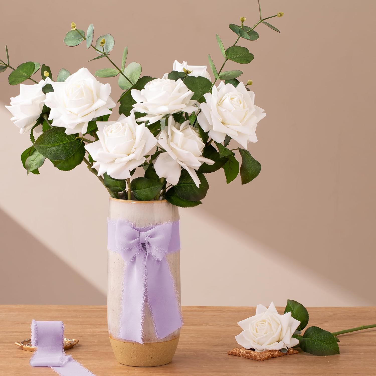 • 【Size and Color】Each roll of chiffon ribbon is 2 inches wide and 7 yards long, perfect for various creative uses such as making bows, decorating wreaths, and DIY crafts. This set includes 3 rolls light purple ribbons. These vibrant frayed ribbons add a rustic charm to your creations, ideal for bouquet wrap or gift ribbon.